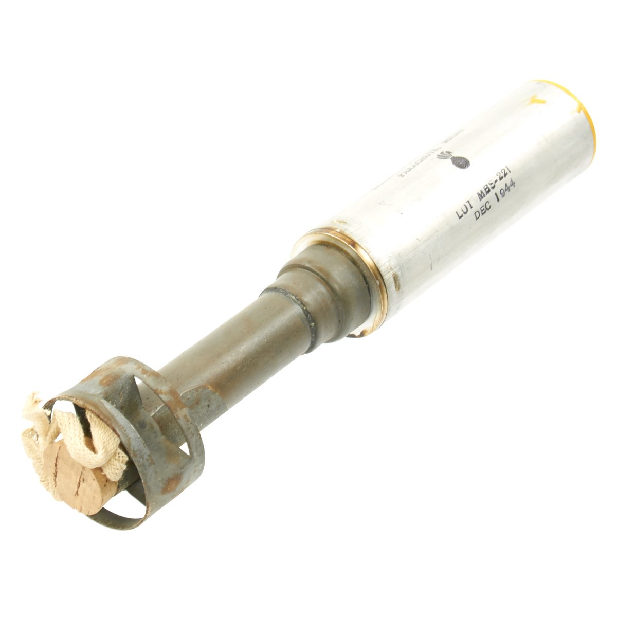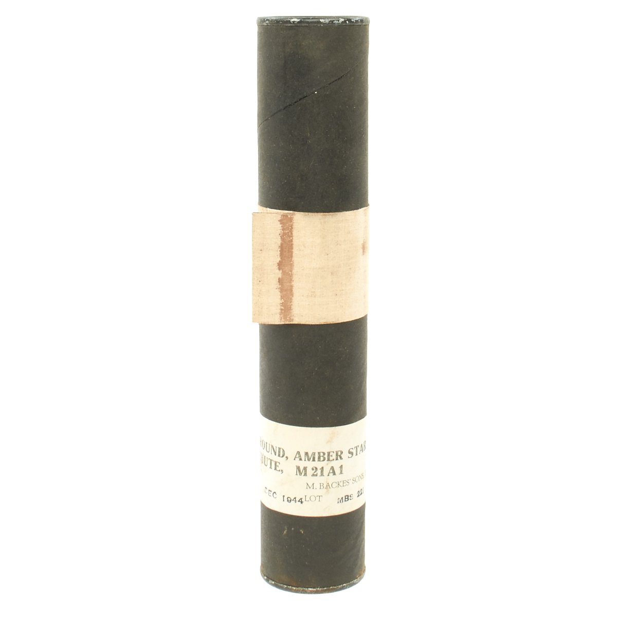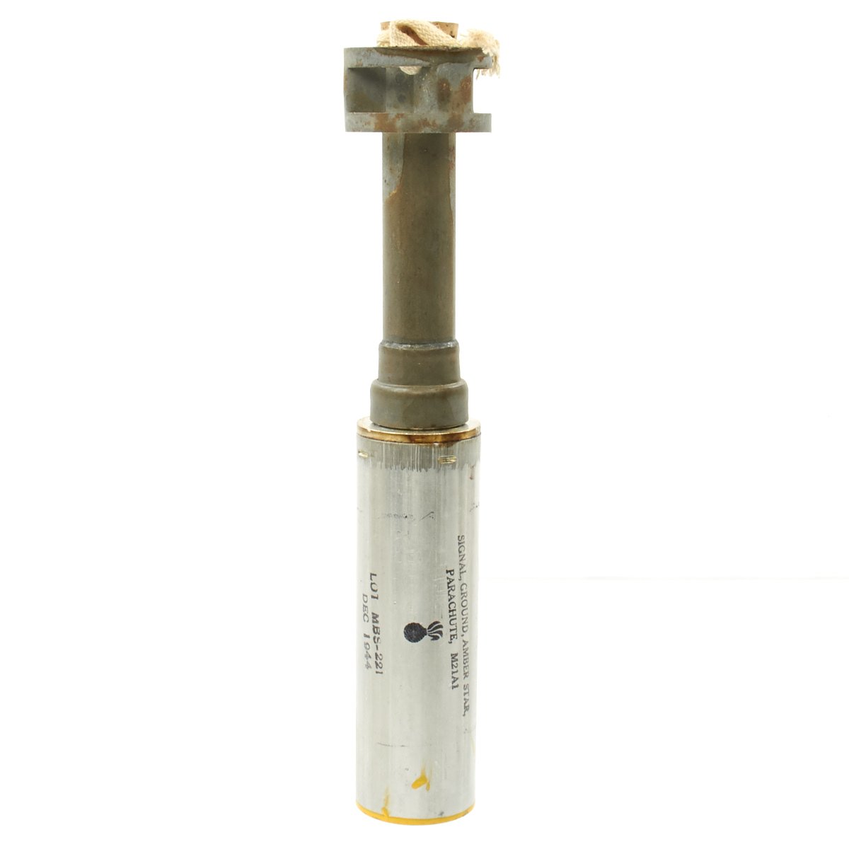 Original Items: Very Few Available. Genuine unissued 1944 dated M21A1 Amber Signal Flares still sealed in their original cardboard transit tubes. These are designed to be fired from a M1 rifle, to a height of 200 to 300 meters. The flare will then hang from a small parachute and float to the ground while illuminating a large area. Measures approximately 1" long and 2" in diameter.