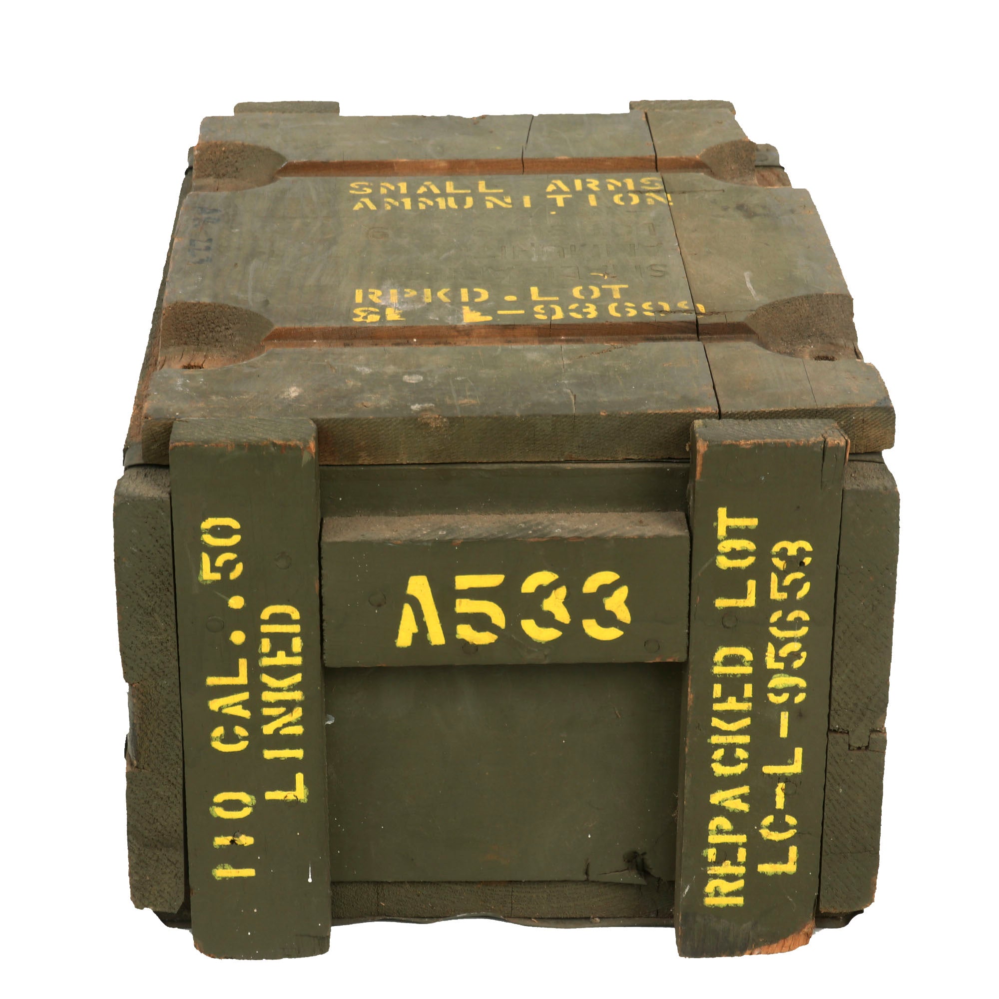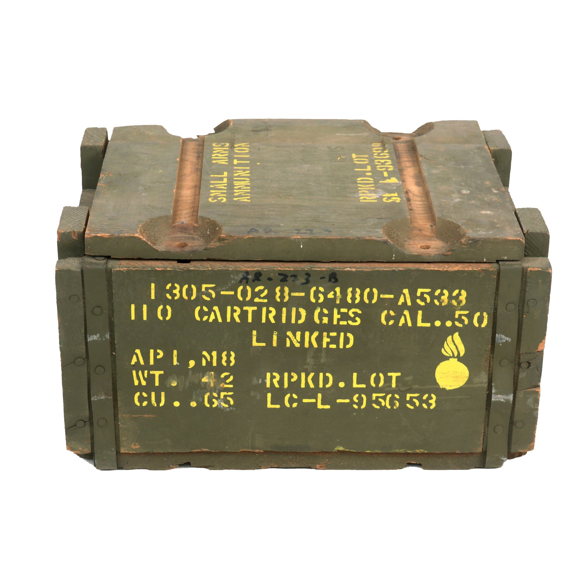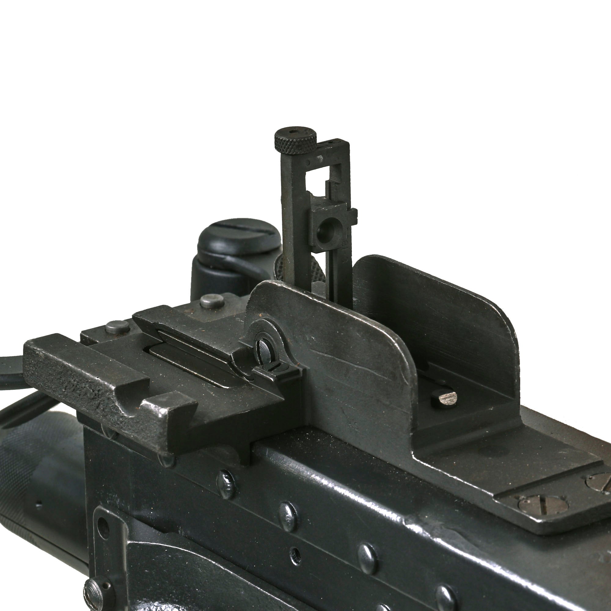 Included with this great set is short 38 round length disintegrating belt of inert drill .50 BMG cartridges, stored in a lovely USGI issue 110 round ammo chest. Also included are a stripped rear back plate, as well as a top cover plate for the rear top cover, used when there is no rear sight in place. These all fit nicely inside the ammo crate, so they can be displayed or kept in storage.