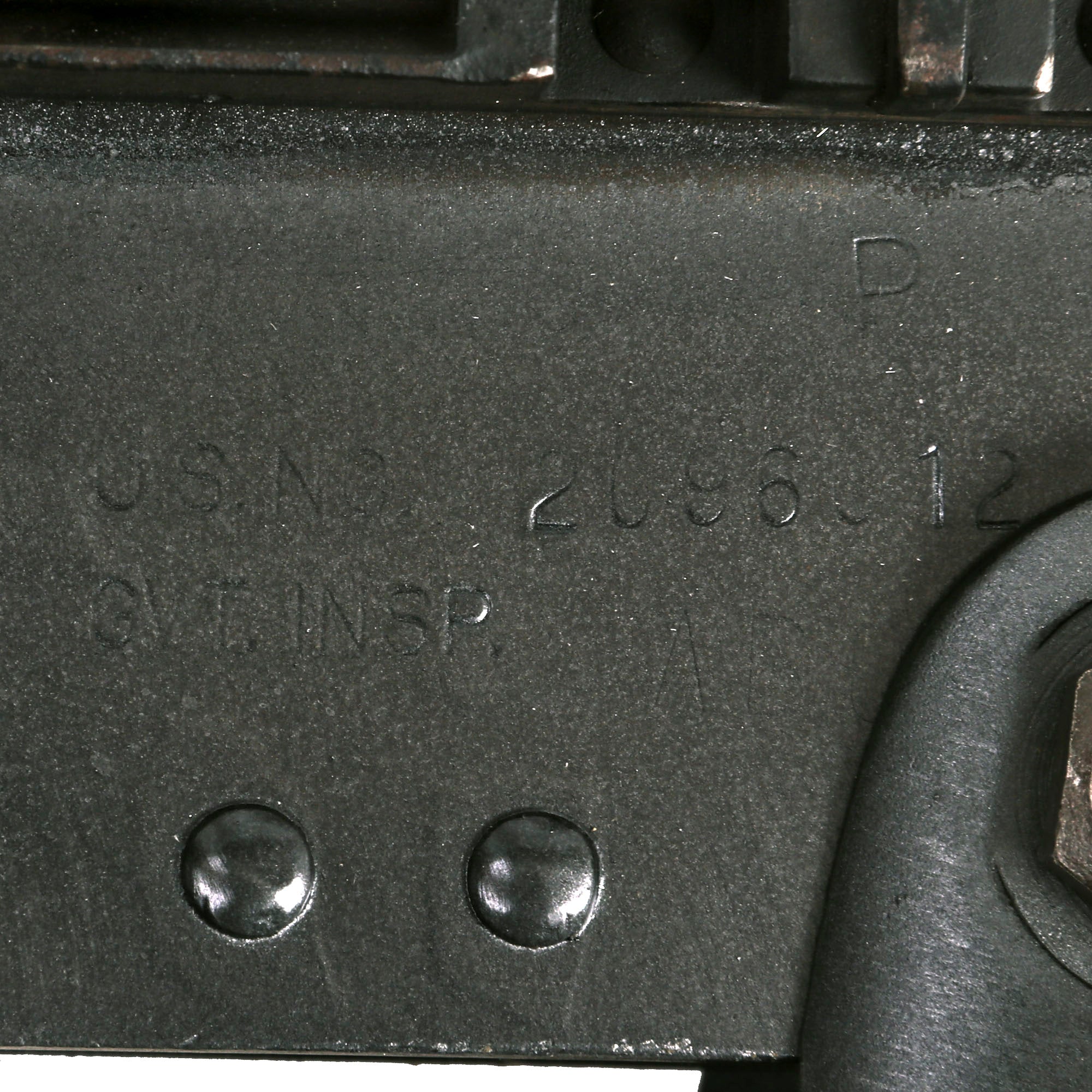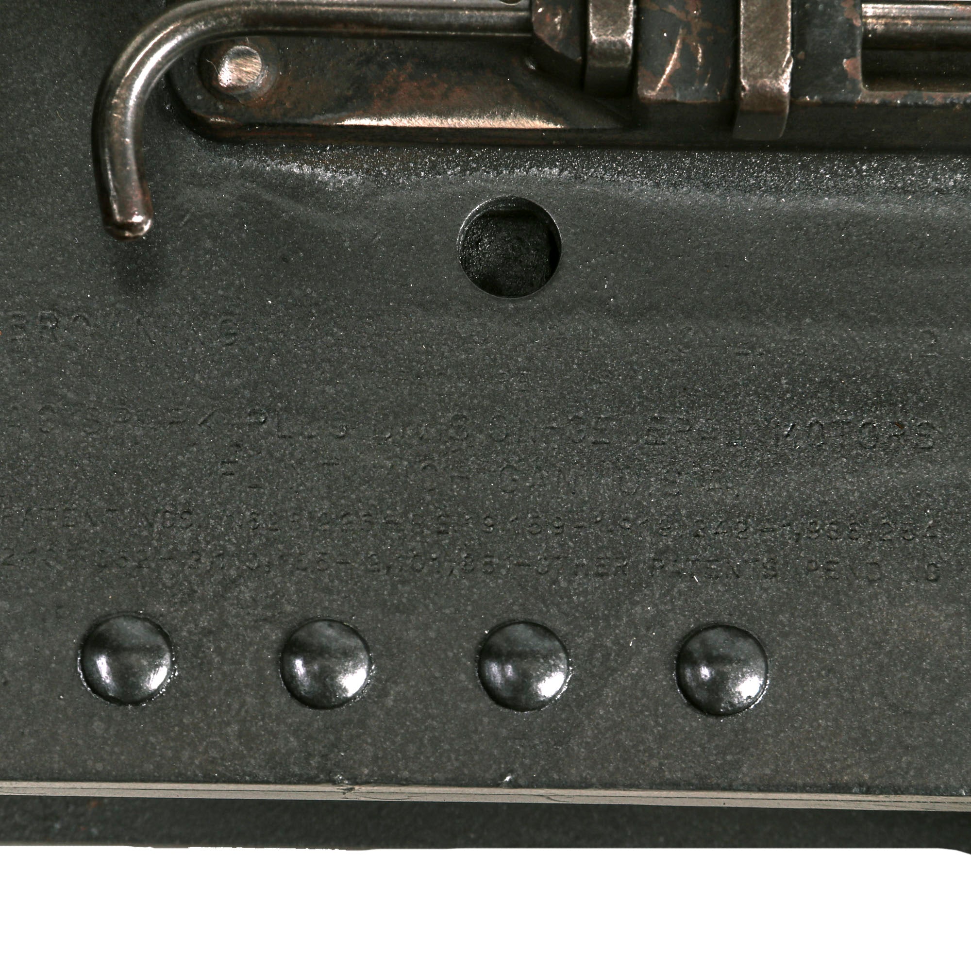 Under this are very small and faint patent markings, a testament to the many innovations that led to the creation of arguably the best heavy machine gun ever made. To the right of this are U.S inspector markings, which are definitely a bit easier to read, and there also looks to be a serial number marking,