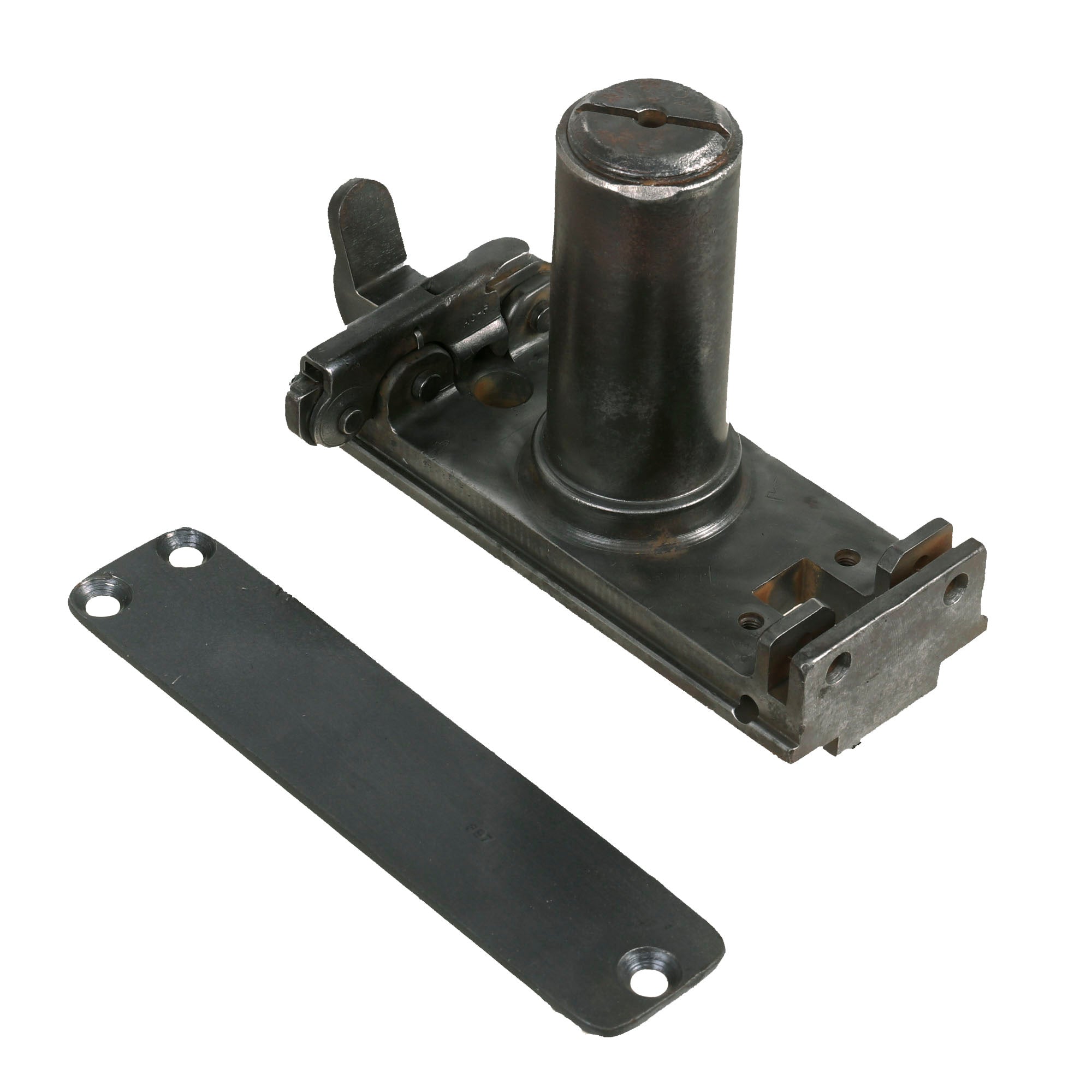 The original front section of the right side plate is still faintly marked under the feed tray with WWII production information:
