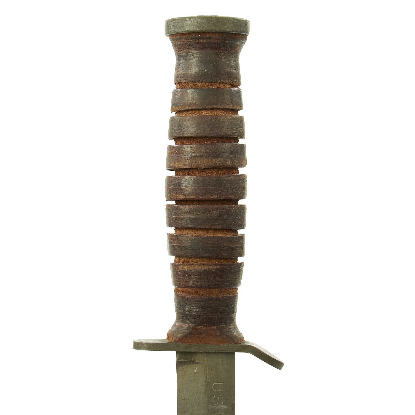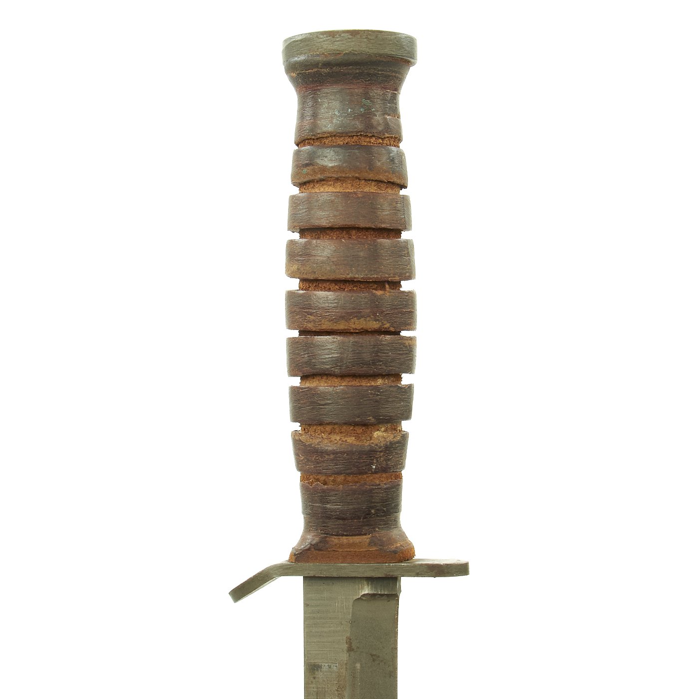 A very nice example of an early issue M3 knife from a desirable maker, in an early leather scabbard, ready to add to your WWII edged weapon collection!