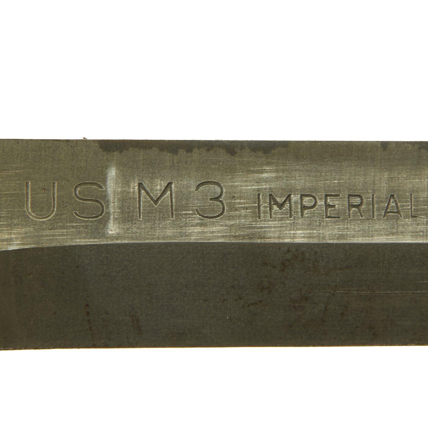 Original Item: Only One Available. This is a fine condition WWII production Mark 3 U.S. fighting knife, made by the desirable maker, Imperial Knife Co., and contained in an original 1943 dated M6 leather Scabbard by Milwaukee Saddlery Co. (MILSCO). Imperial made M3 and M4 bayonets, as well as other smaller edged weapons for the U.S. Government during WWII.