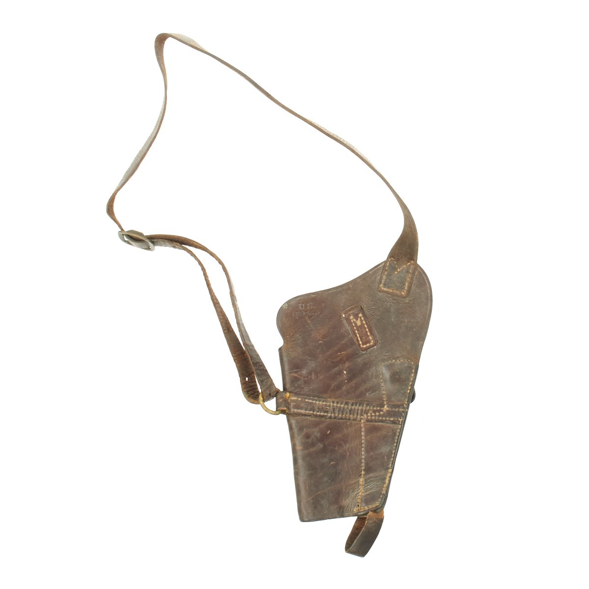 Original Item: Only One Available. Very nice original WW2 issue leather shoulder holster for the Colt M1911 .45 pistol. Adopted in 1942, this holster was standard issue for aircraft and tank crews, and was often used by officers who preferred it to the hip holster. In combat areas, all sorts of troops found ways to "acquire" handguns and the regulations as to who was and wasn't permitted to carry them were rarely enforced.