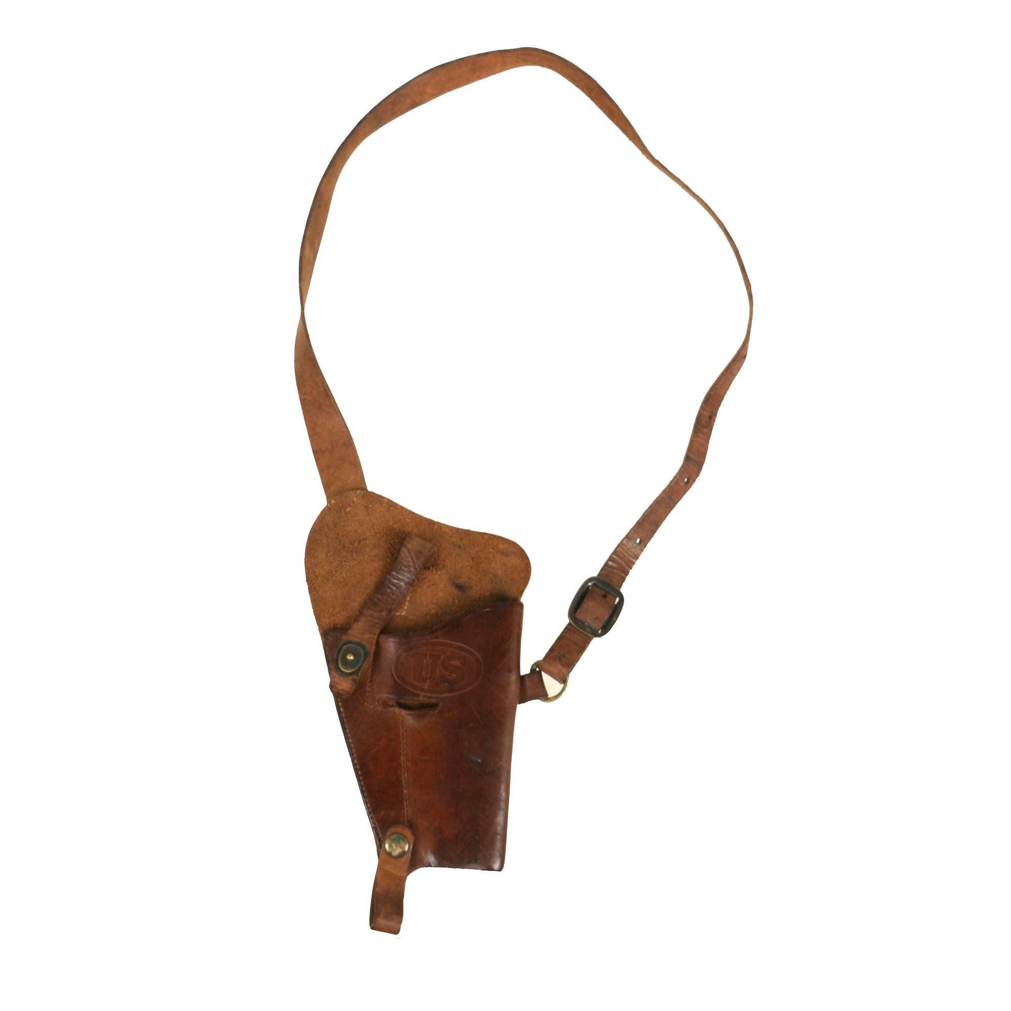 Original Item: Only One Available. This is a very nice WWII service-worn M3 leather shoulder holster for the Colt M1911 .45 pistol. Adopted in 1942, this holster was standard issue for aircraft and tank crews, and was often used by officers who preferred it to the hip holster. In combat areas, all sorts of troops found ways to "acquire" handguns and the regulations as to who was and wasn't permitted to carry them were rarely enforced.
