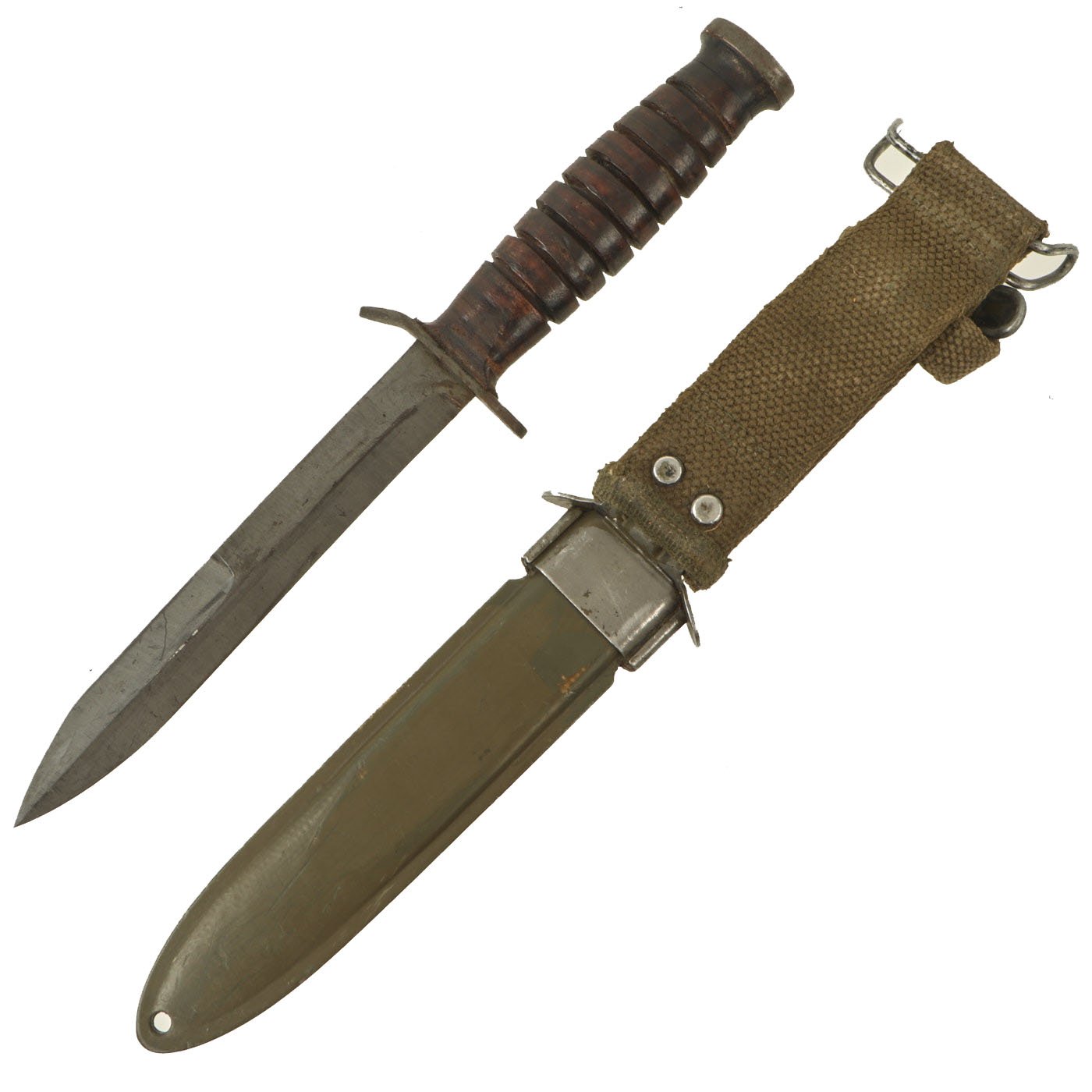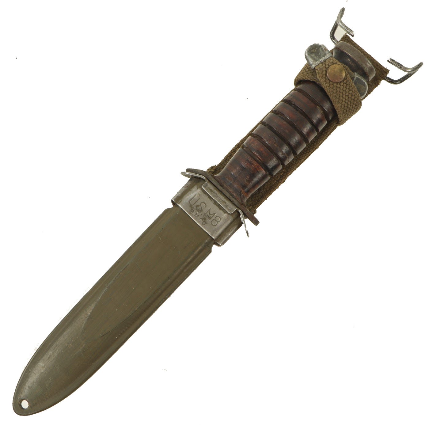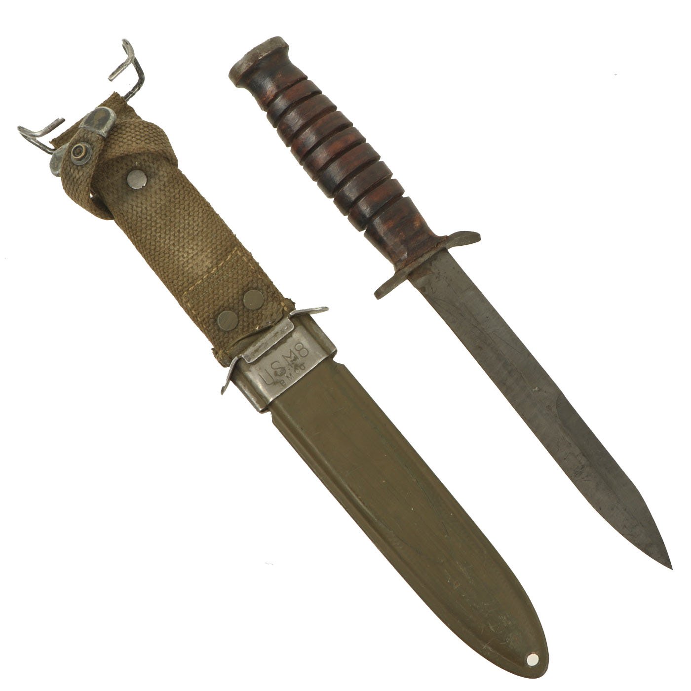 A great barely used M3 knife from a desirable maker, complete with a correct modified scabbard. Ready to add to your WWII edged weapon collection!