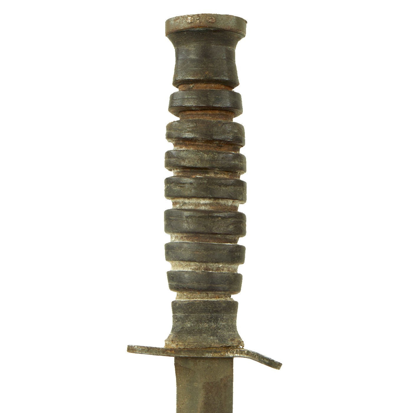 A very interesting U.S. M3 Knife from WWII, which had most of its markings removed for some reason, complete with a very nice scabbard. Ready to add to your WWII edged weapon collection!