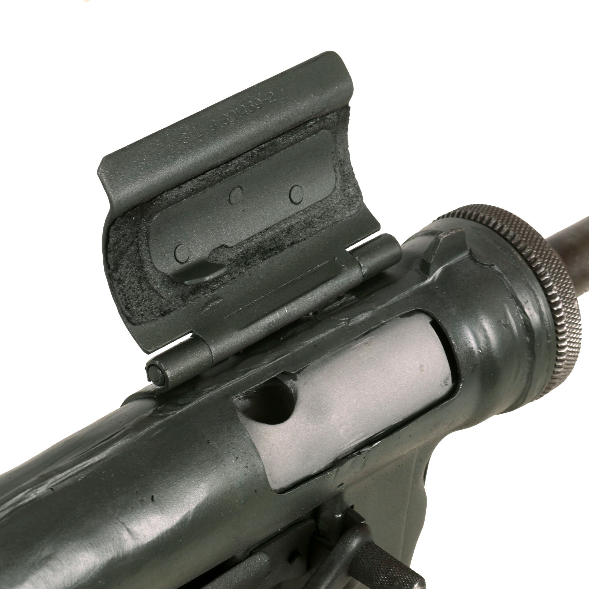 Every part on this display gun is original WWII manufacture other than 30% of the receiver replaced by solid steel (as required by BATF). Additionally, it has had the original bolt welded into the forward position. The barrel is original and has NOT been deactivated. It can still be removed easily from the front of the display gun, and it shows a mostly bright bore with clear lands and grooves, showing a bit of wear and past oxidation.