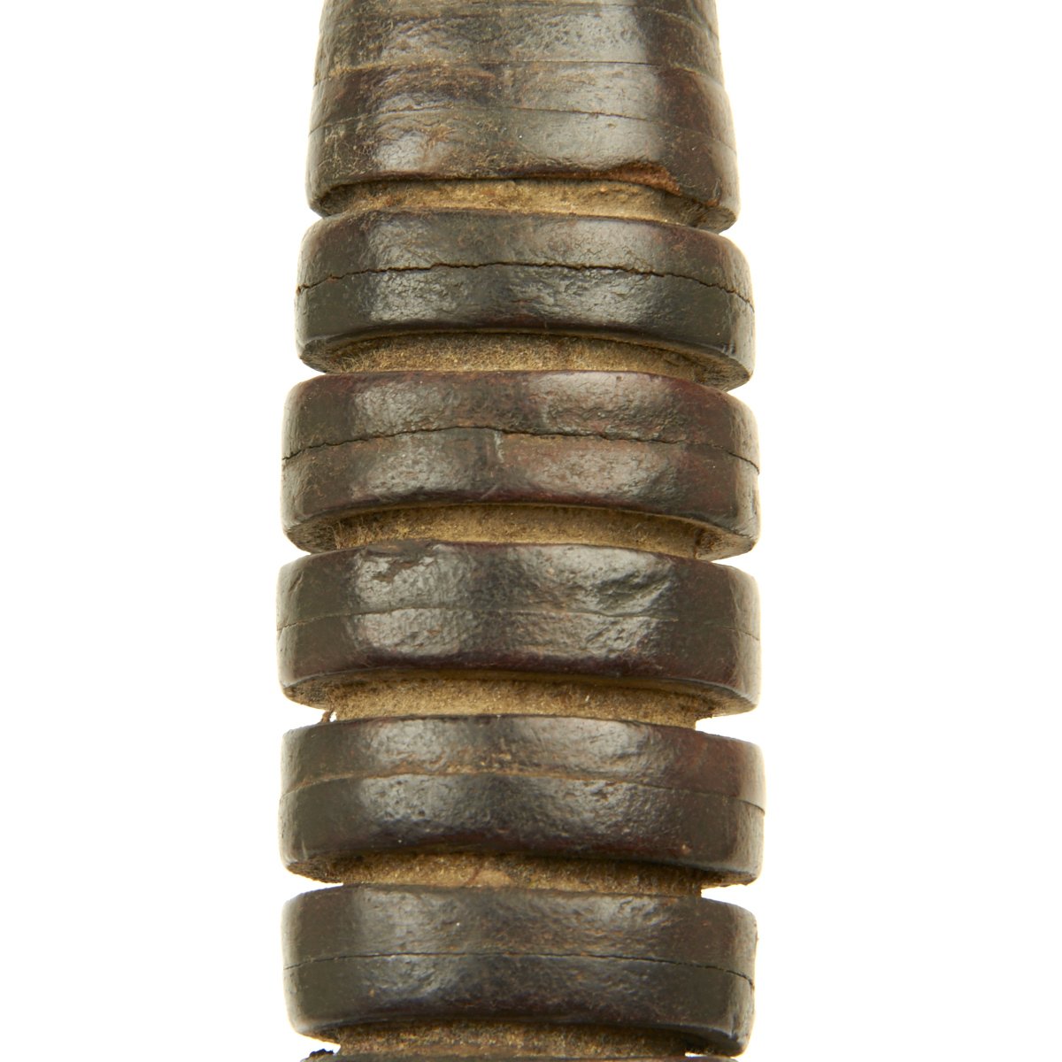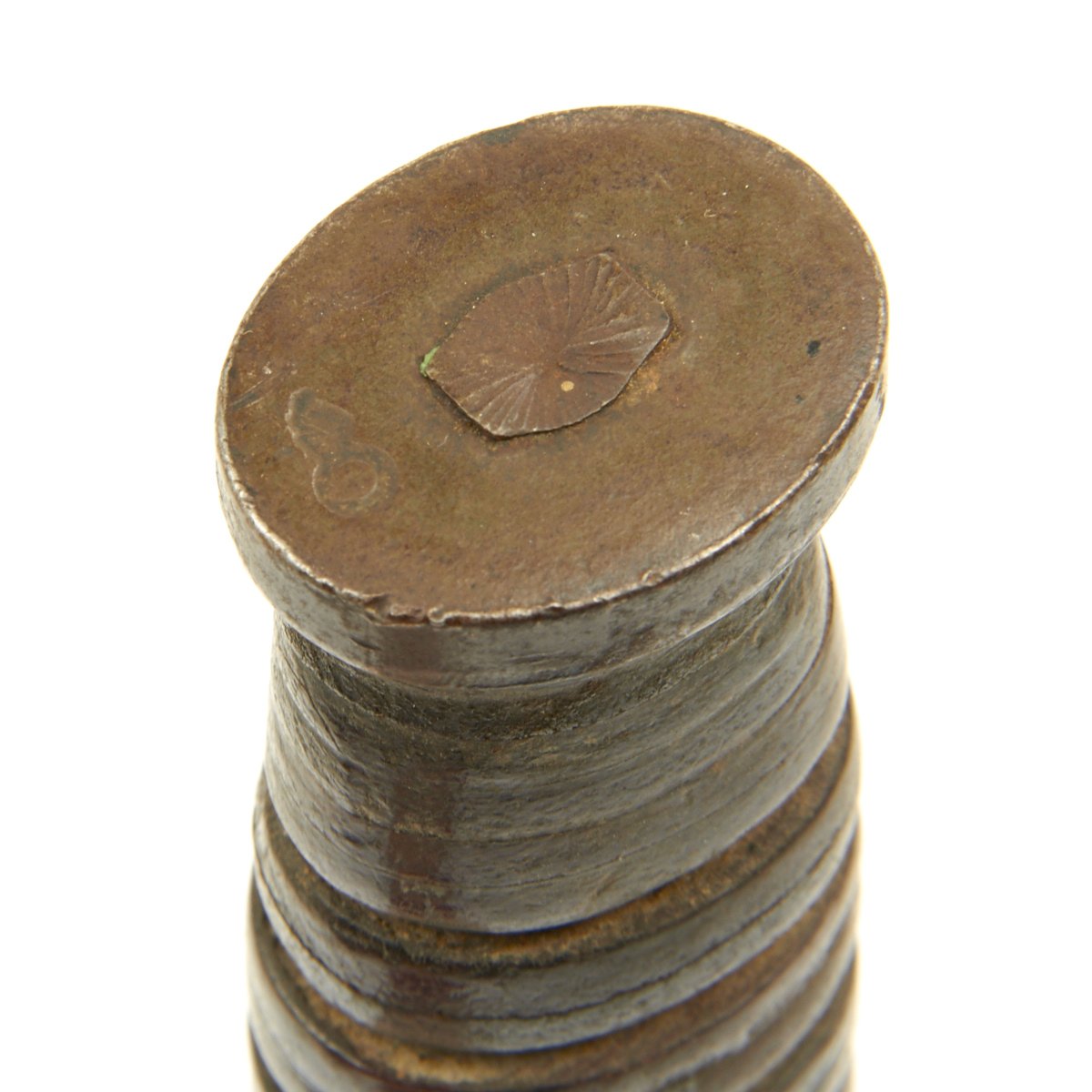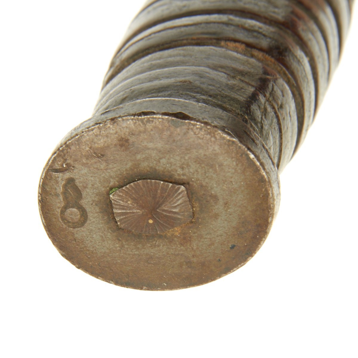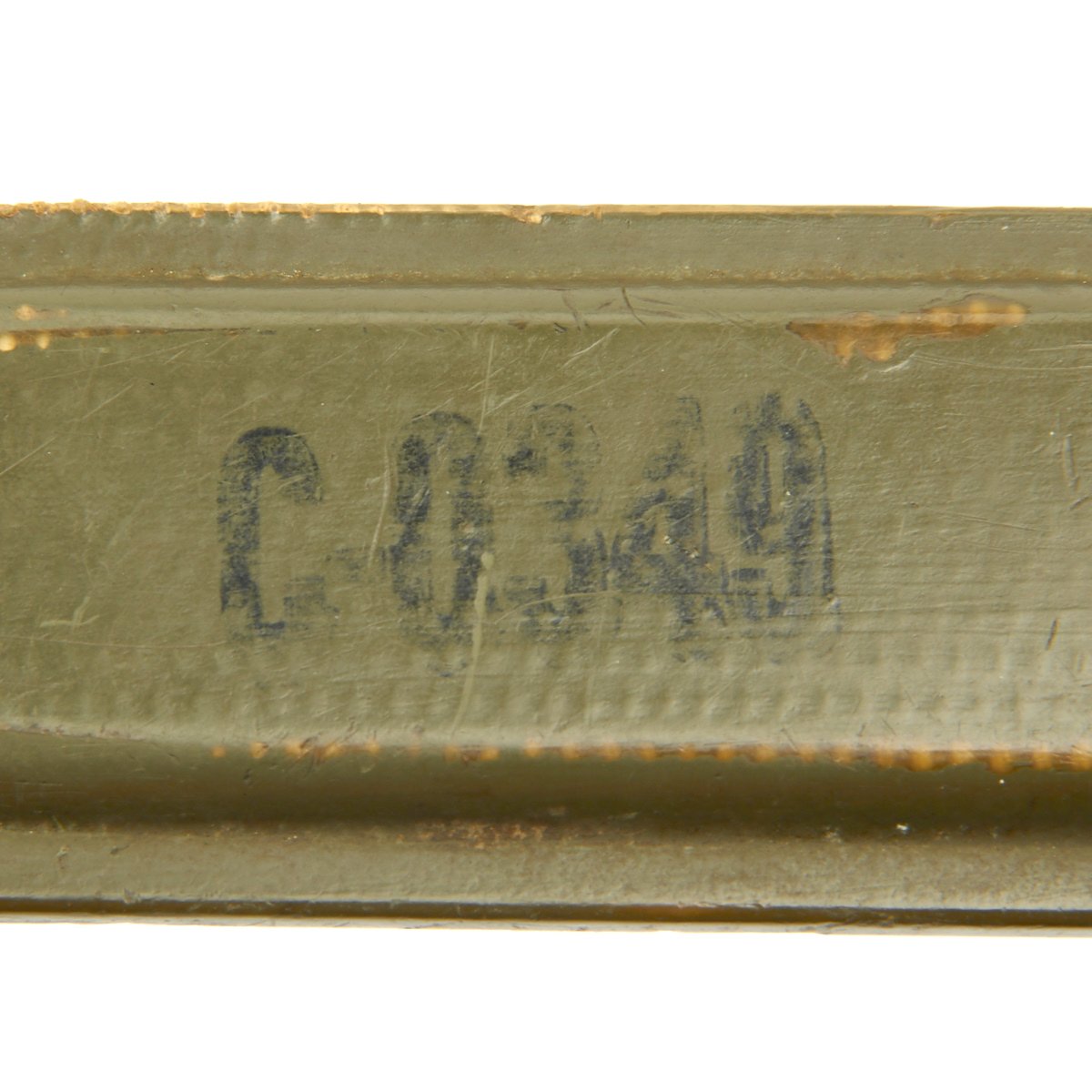 The original scabbard is marked, U.S. M8 B.M. CO and in very good condition with no major defects to note. The canvas is excellent, though there is wear ib the fiberglass scabbard shell, and the metal finish is somewhat oxidized. The scabbard was manufactured by Beckwith Mfg Co. a division of Victory Plastics.