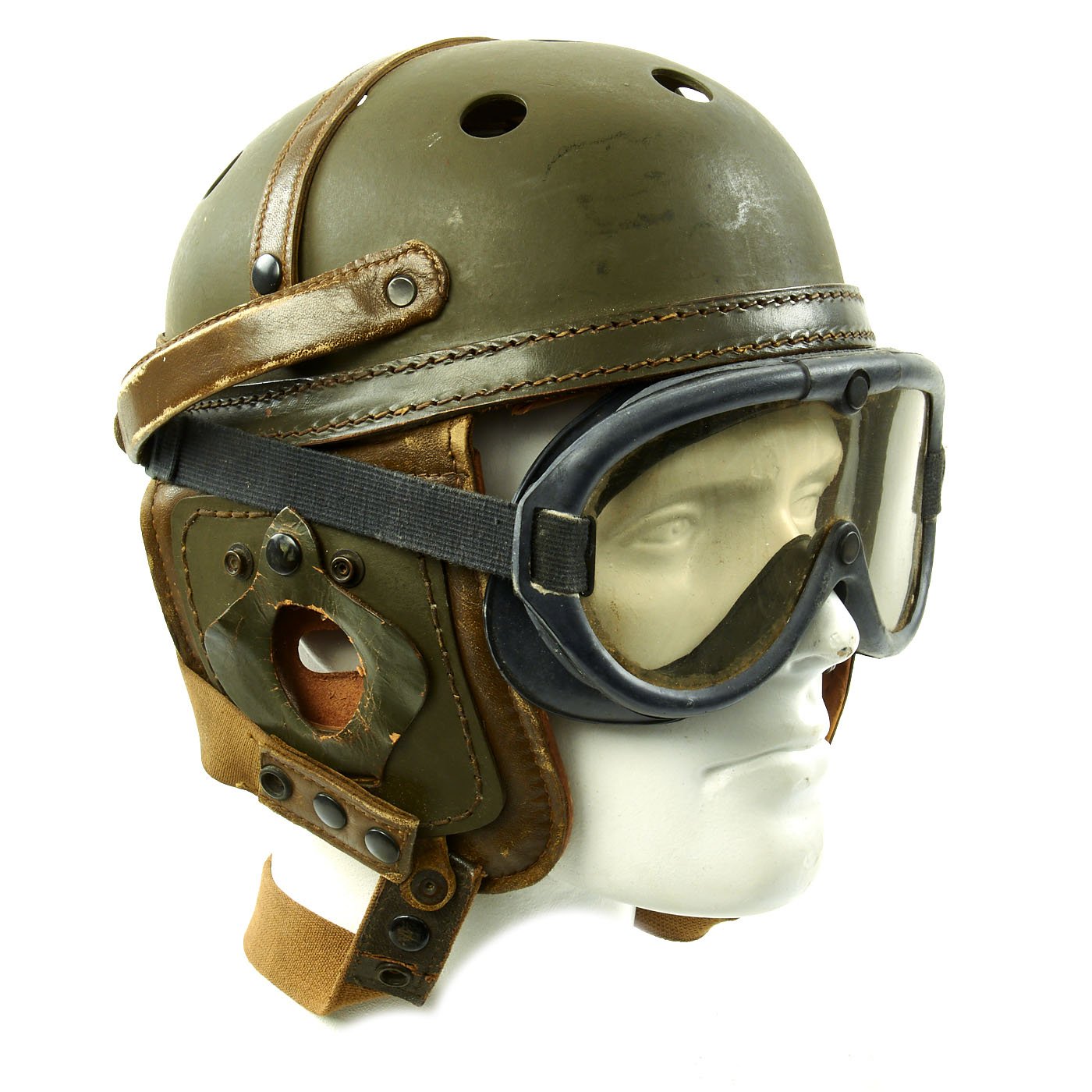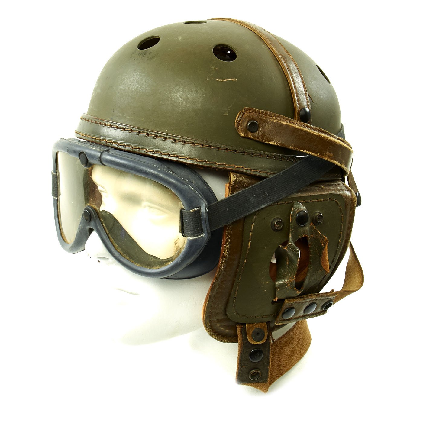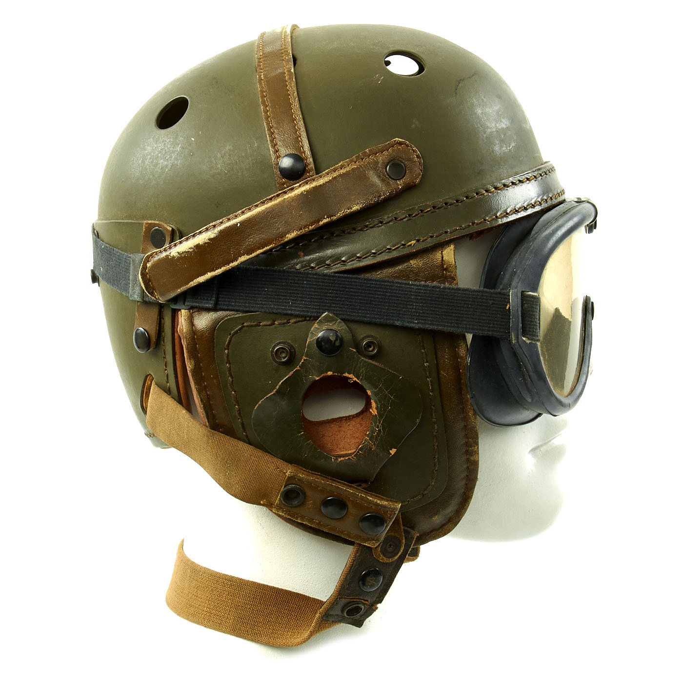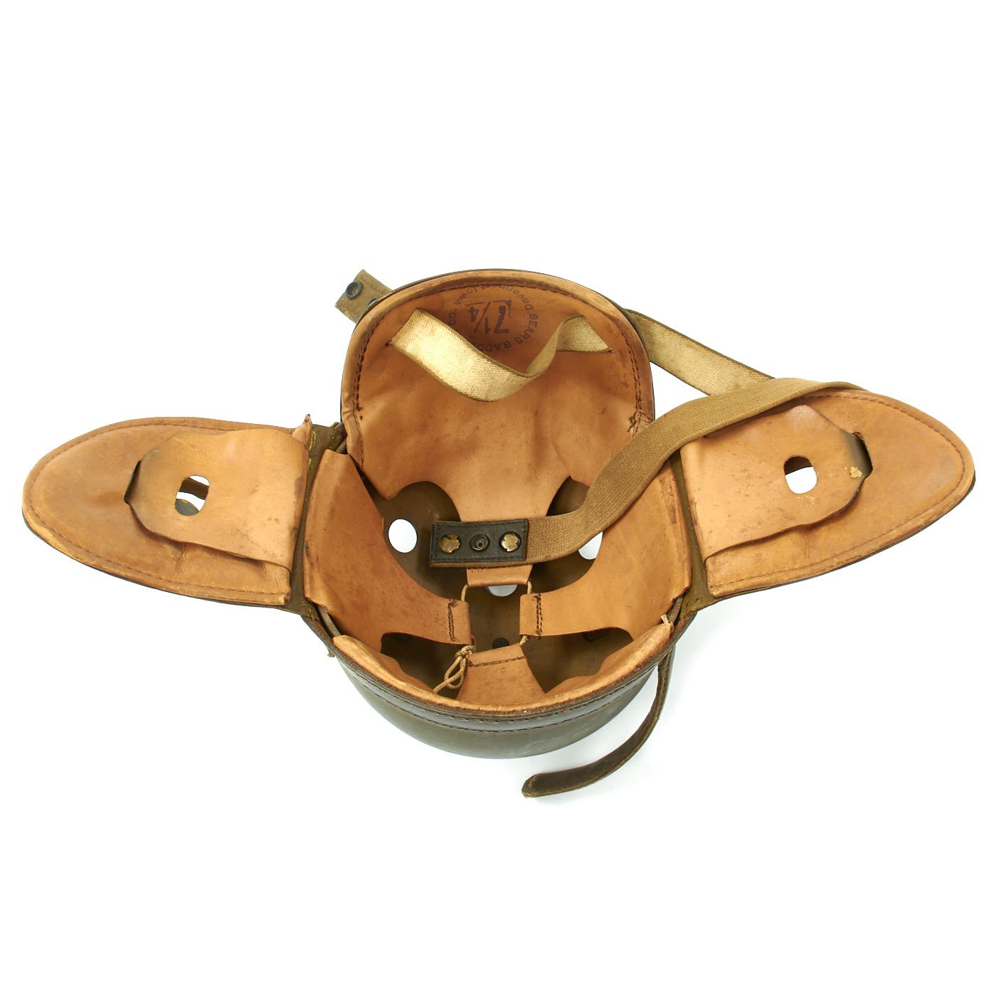 Original Item: Only One Available. This is a nice WWII example of the classic M38 tanker helmet used by American tank crews in world war two. The helmet is marked as follows: