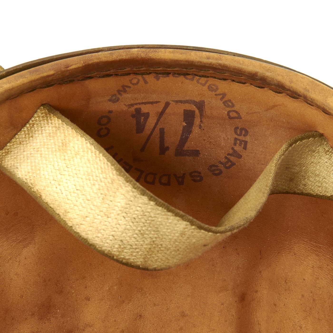 Overall condition of the helmet is very good, with the exterior and interior in great shape. The leather has minimal staining or discoloration, and the ear pieces are great, though the exterior leather is a bit deformed. The side springs for holding down the flaps are still present, as is the rear elastic band that attaches the side flaps to the rear. There is also an additional strap added on the bottom in place of the chin strap, but it is in fact another back strap. All snaps look to be intact and functional.