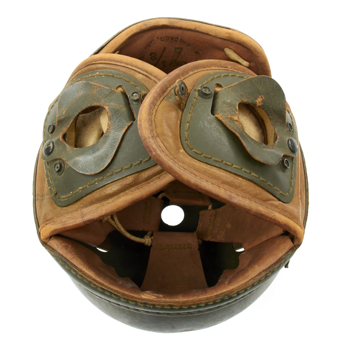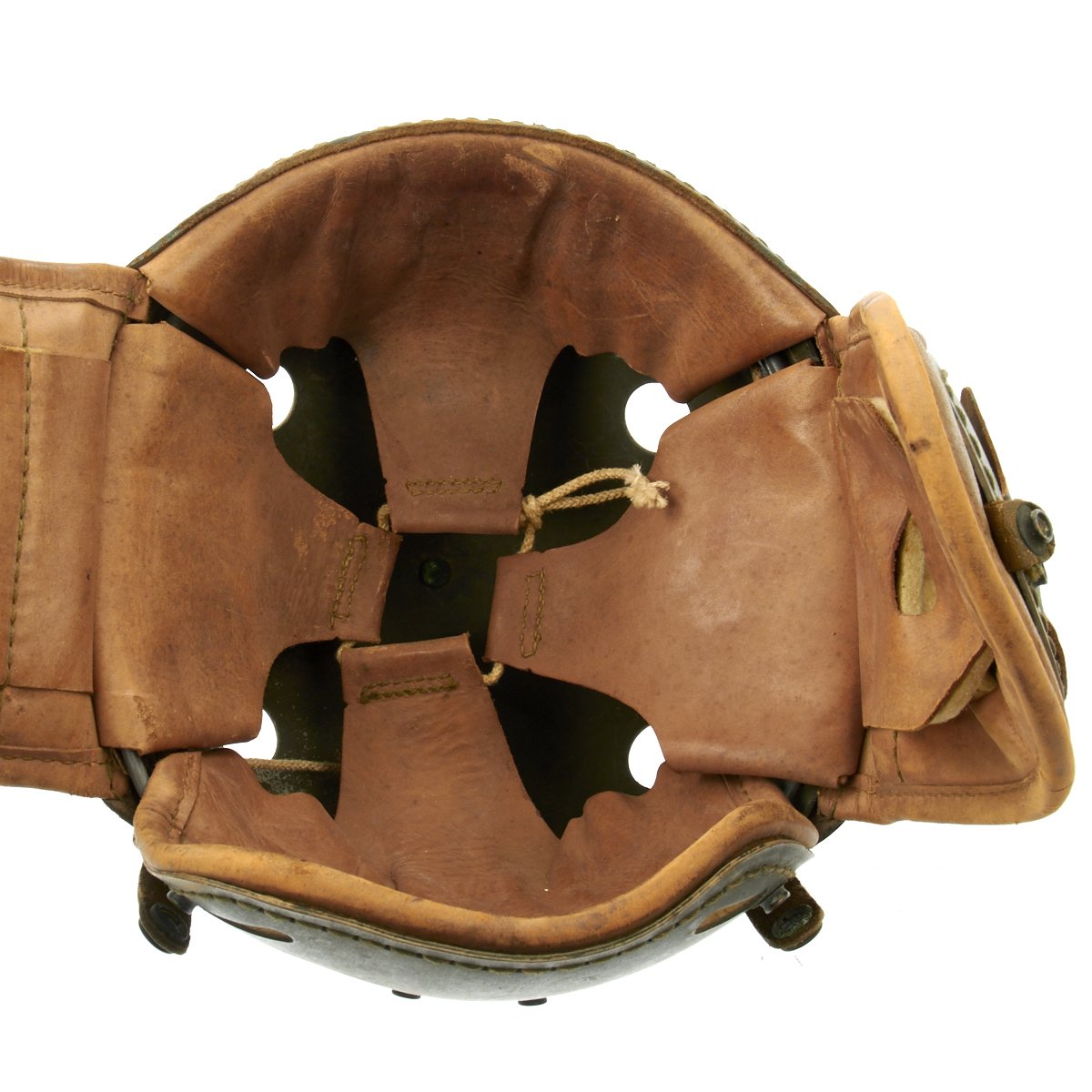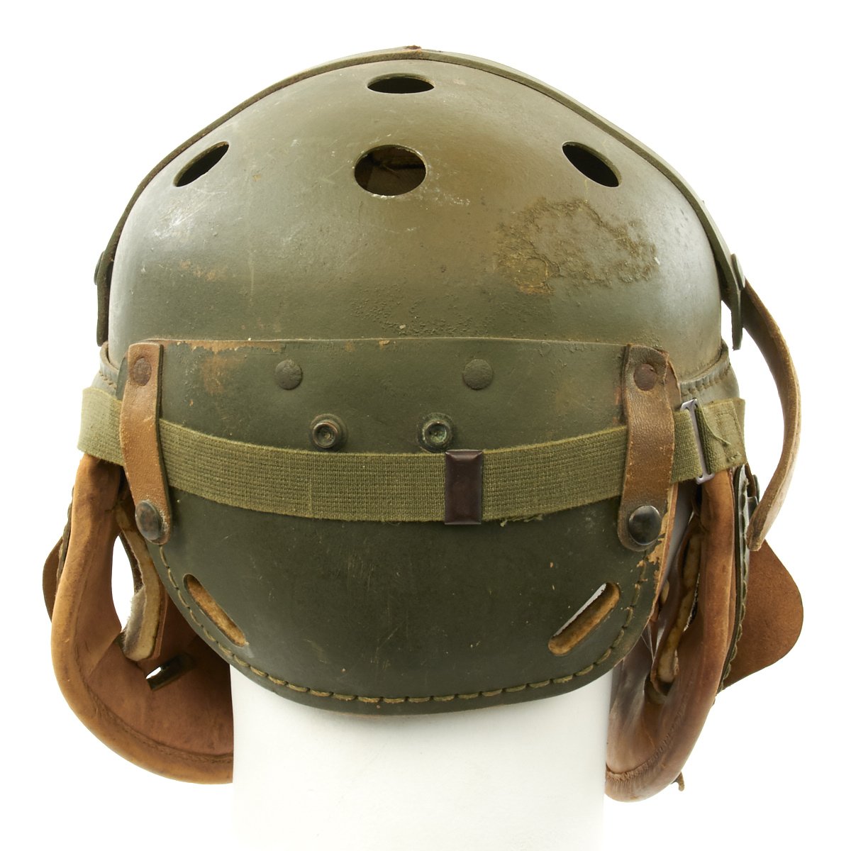 Original Item: Only One Available. This is a genuine WW2 example of the classic M38 tanker helmet used by American tank crews in world war two. The helmet is marked as follows: