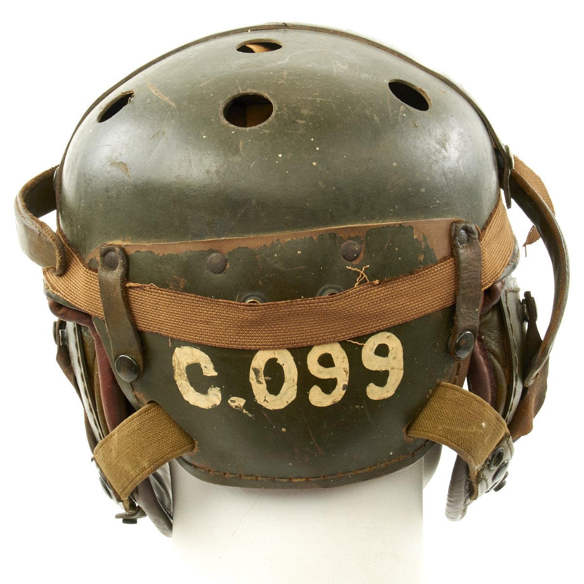 Original Item: Only One Available. This is a genuine WW2 example of the classic M38 tanker helmet used by American tank crews in world war two. The helmet is marked as follows: