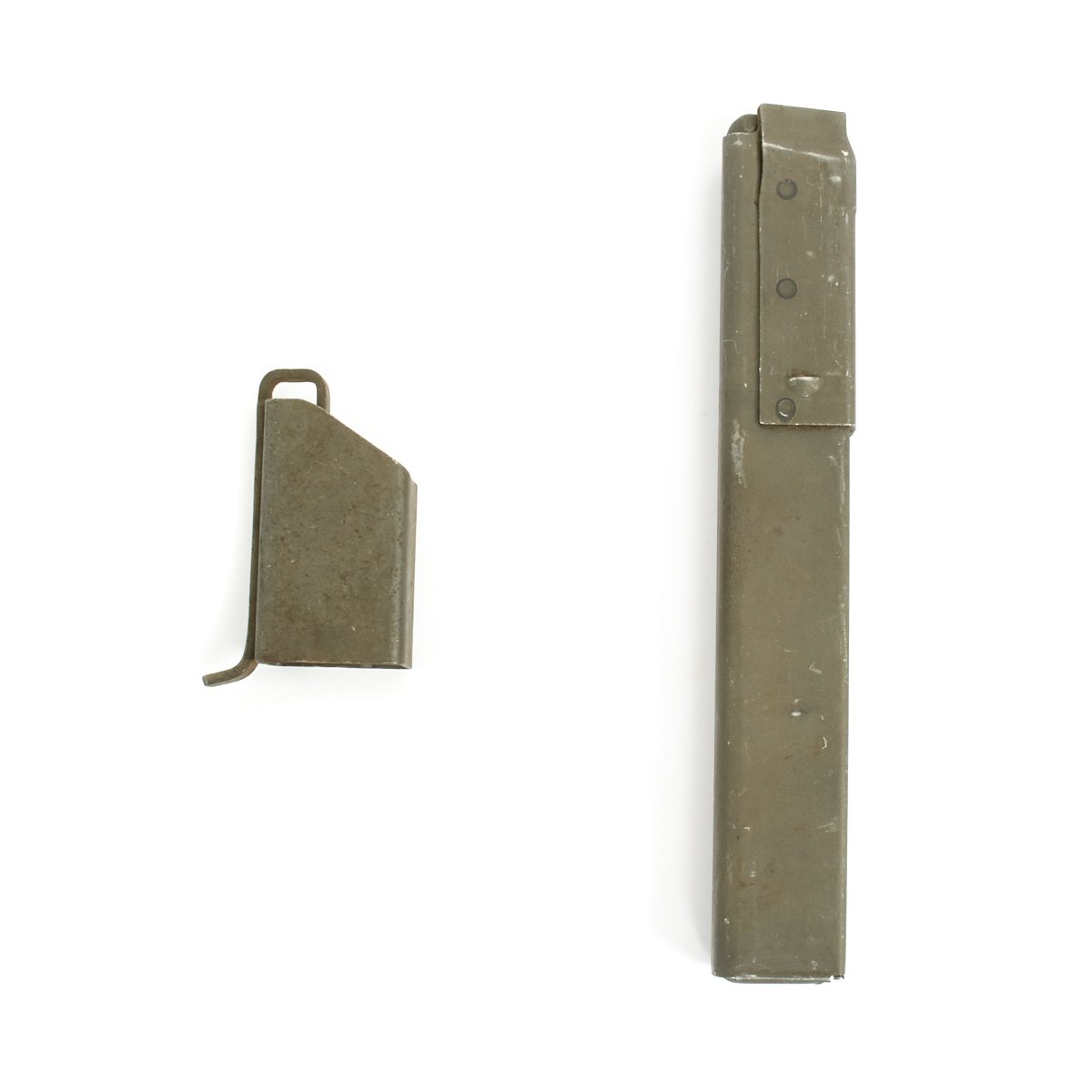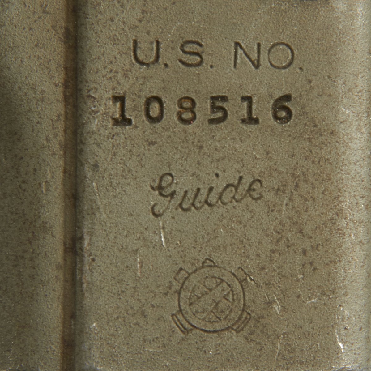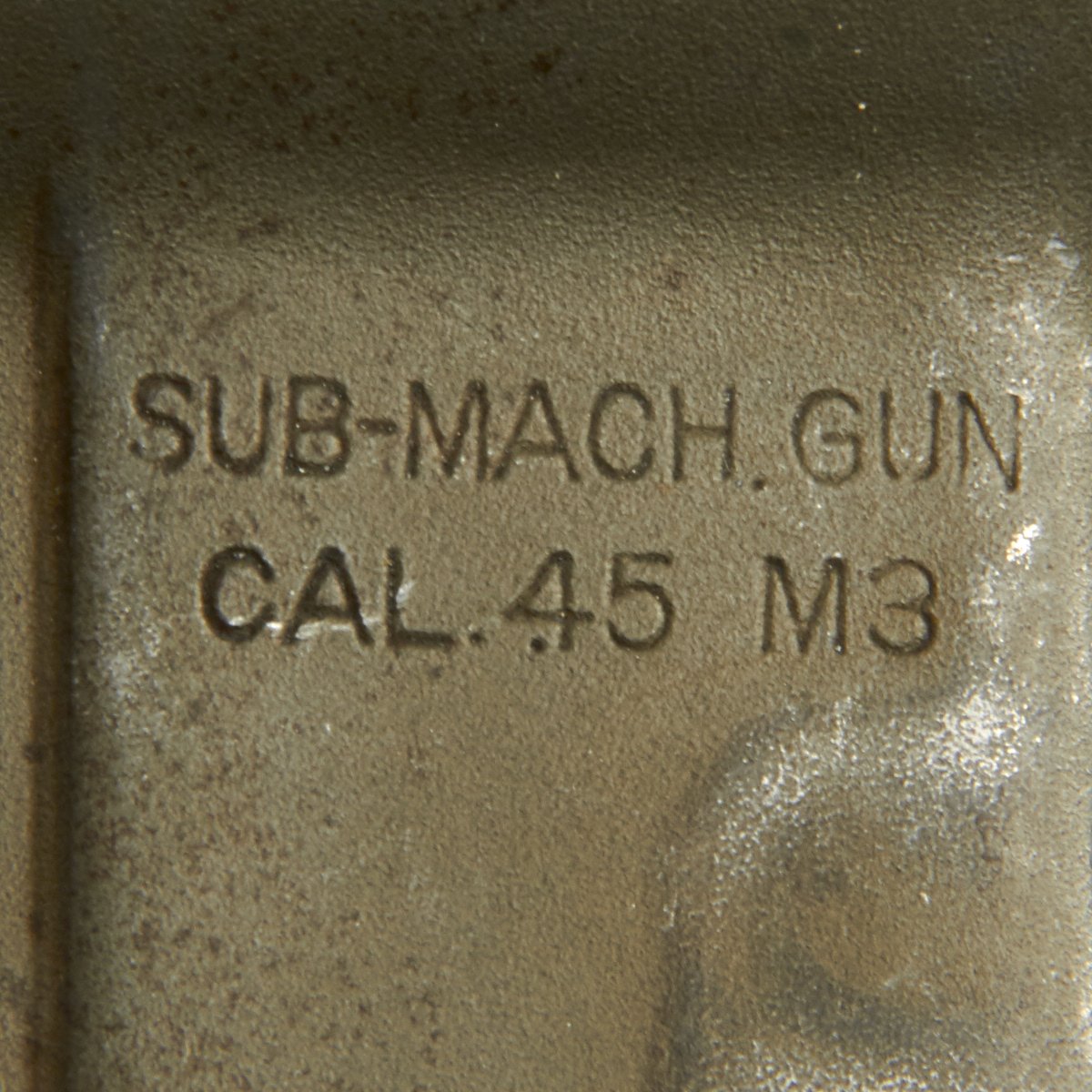 Original Item: Only One Available. This is a fantastic condition M3A1 grease gun parts set by Guide Lamp Company complete with US ordnance markings on left side of magazine and serial number 108516. It is comprised of totally original WWII parts. It is offered complete with the exception of the receiver making it 100% legal for sale, trade and ownership within the USA. Comes complete with flash hider, one 30 round magazine (high capacity restrictions will apply) and magazine loader. A telescoping wire shoulder stock, fixed peep sights, and all steel construction made this the must less costly successor to the Thompson and Rising sub-machine guns of WWII. It has an interesting safety mechanism that when the bolt is back and the ejector port cover is closed, a tab on the cover holds the bolt in the rear position, even when the trigger is actuated. One must open the ejector port cover in order for the bolt to move forward and fire. We haven't had, or even seen, a Grease Gun parts set in nearly 20 years, and we expect it could be another 20 years before we get another. Act now or be sorry later!