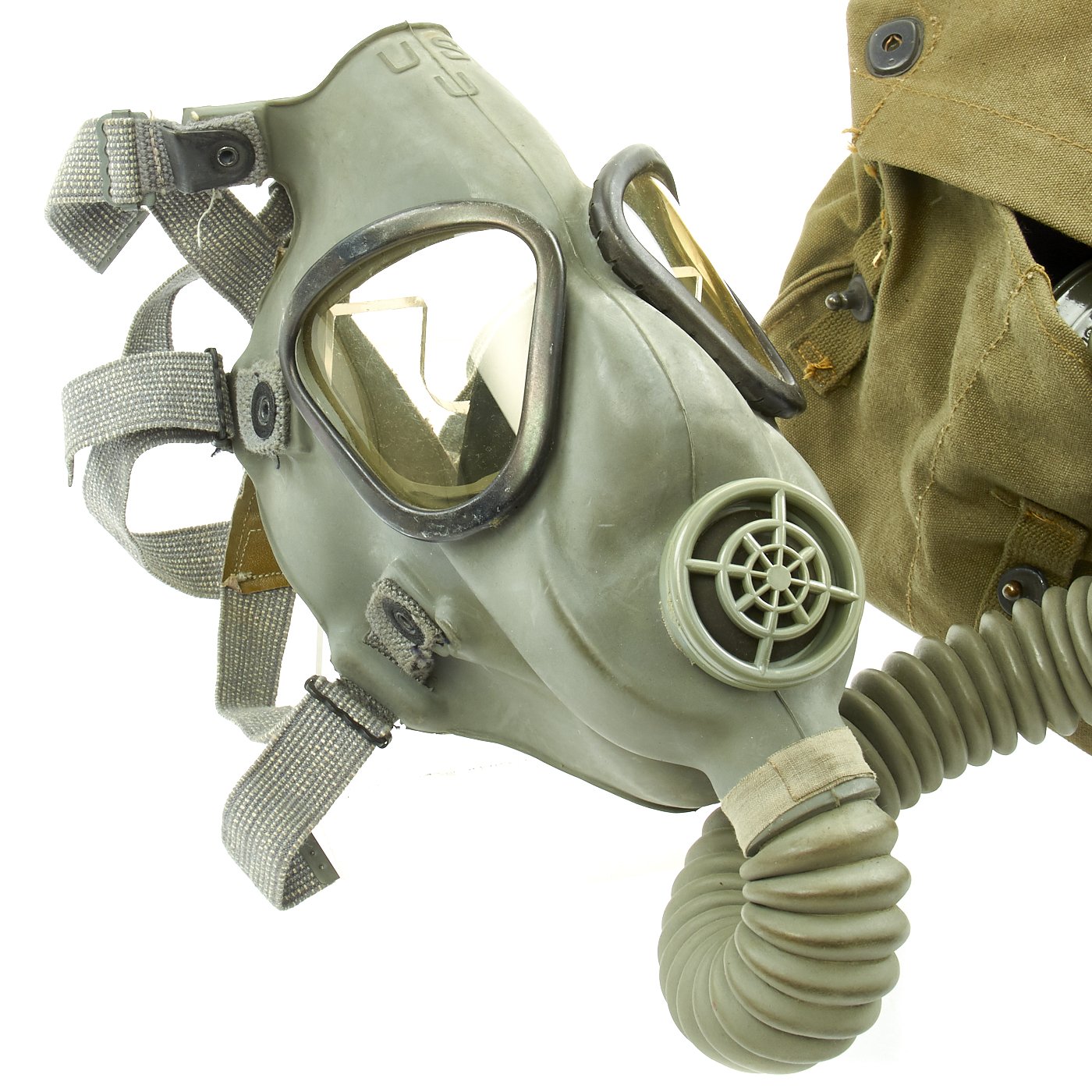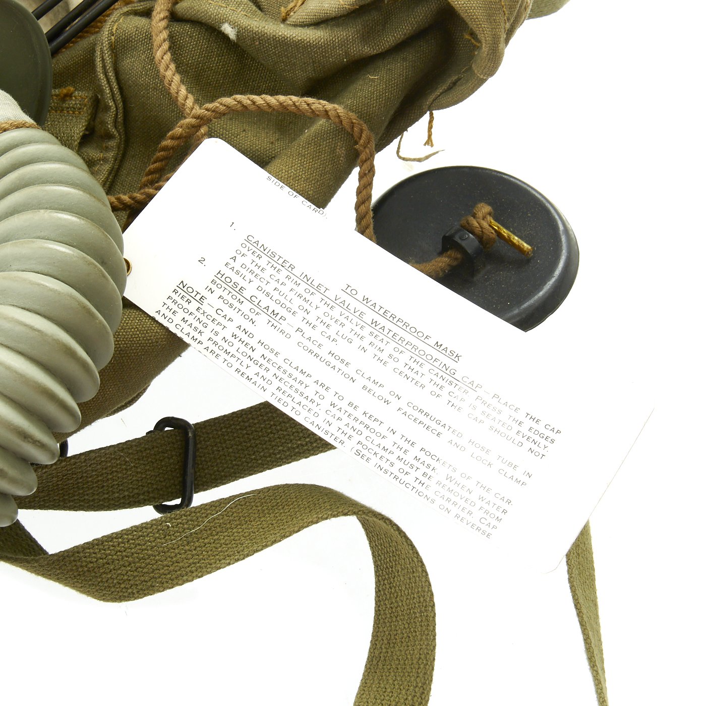 Original Item: Only One Available. As used by U.S. infantrymen during the Normandy Invasion as part of Operation Overlord on D-Day June 6th, 1944, this is an excellent unissued condition M4 lightweight service gas mask set.