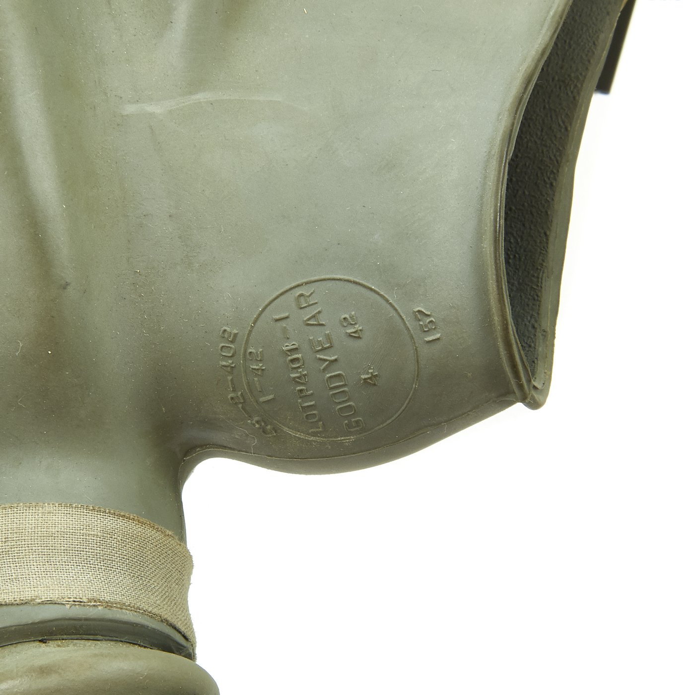 The M4 mask is in unissued condition with supple rubber and is maker marked by GOODYEAR and dated 1942. The filter is unused and also in excellent condition. The set comes complete with M4 Gas Mask Bag and all contents to include gas mask and filter, and instruction card. This is a rare set to find complete as most of these masks were discarded after the initial months of the invasion. Perfect for a Normandy invasion collection!