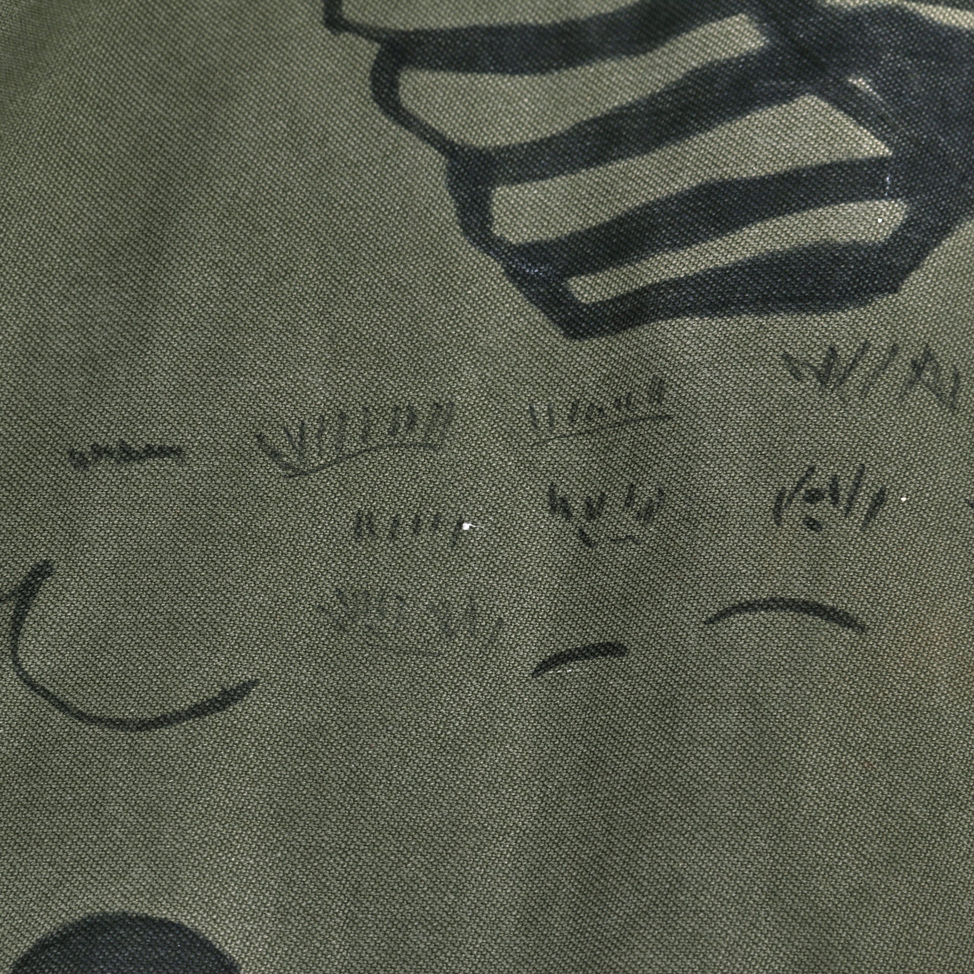The overall condition of the jacket is quite nice with a solid level of wear present. There is no significant damage present though there are a few wear holes and tears present, mostly isolated to the cuffs. The artwork on the back is still easily discernible though slightly faded. It is possible that the artwork was post Korean War applied, which we have no way of determining.
