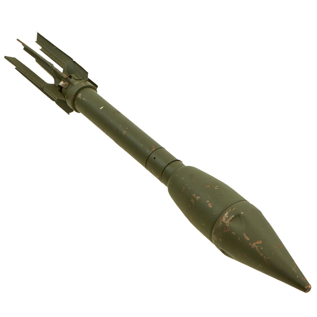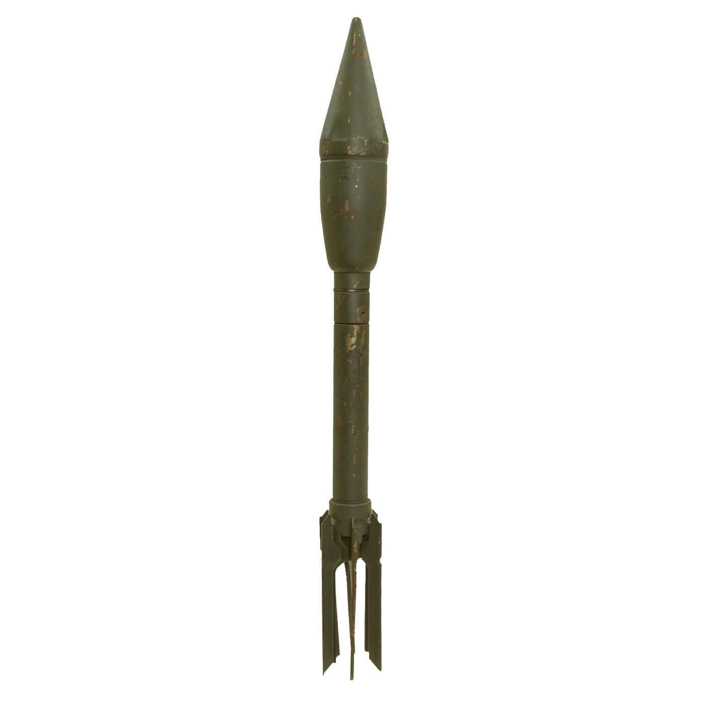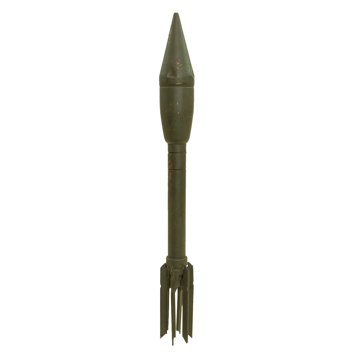 The inert rocket measures approximately 22 inches long and has been repainted OD green.