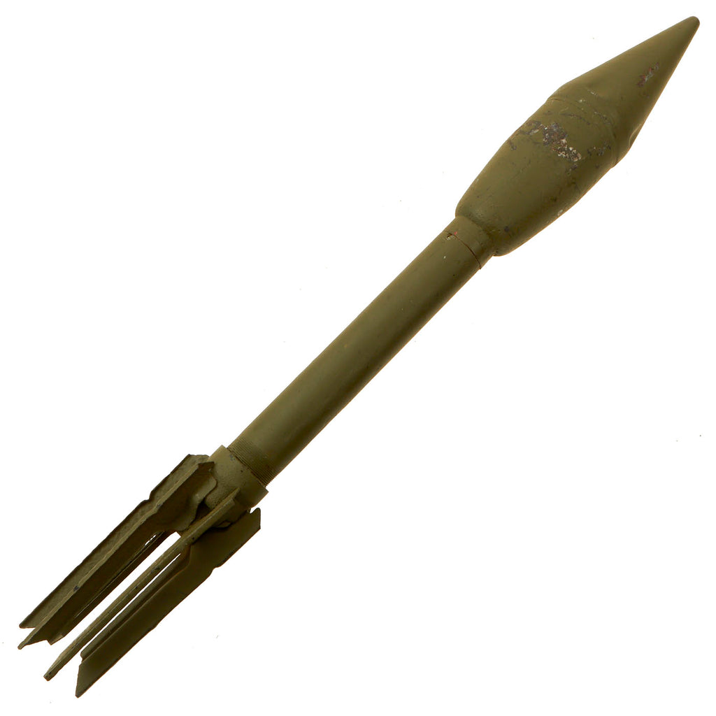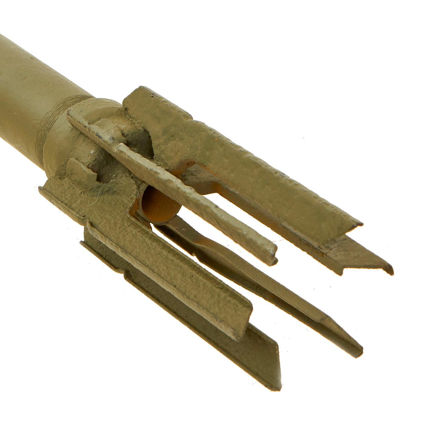 Original Item: Only One Available. This is a very nice original WWII inert M6AA rocket for the U.S. WWII 2.36 inch M1 / M1A1 Bazooka. The 2.36" rocket consists of a head, a stabilizer tube, and tail. The rocket is totally inert and complies with standards outlined by BATF and is not available for export.