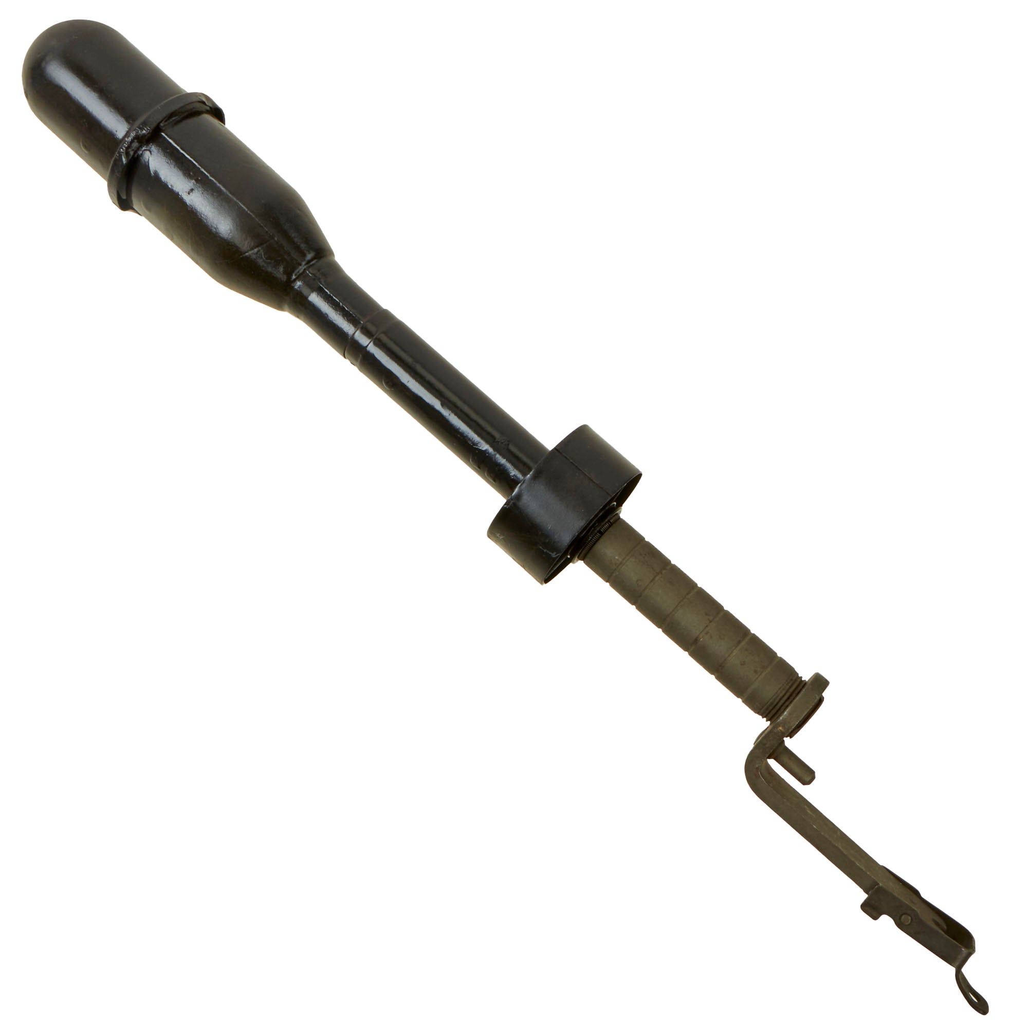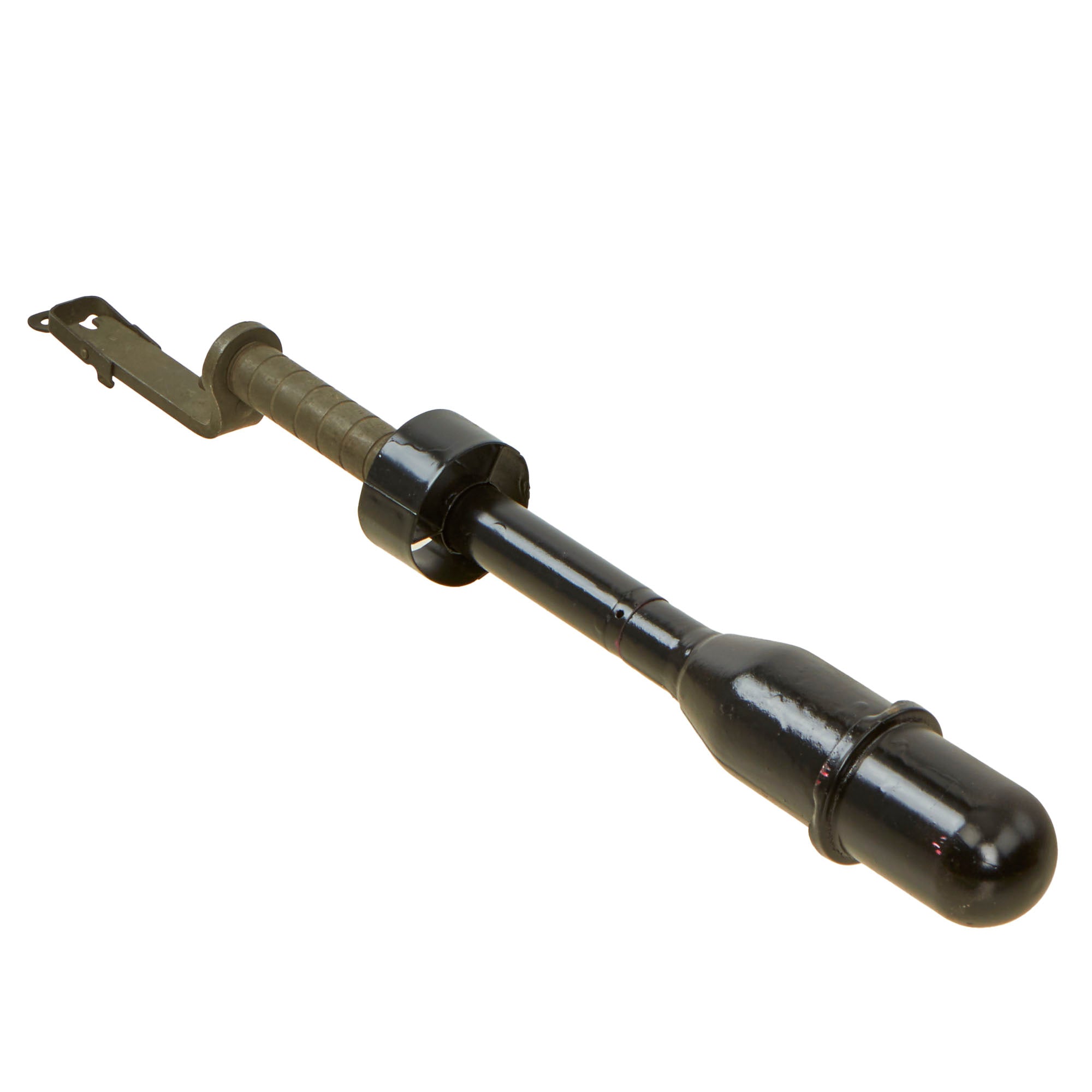 - M11A2 Practice Grenade: This grenade simulates the Anti-Tank Grenade M9A1. The grenade consists of a body, stabilizer assembly and fin. The body is cylindrical with the two pieces being joined in the middle. The stabilizer is a hollow tube which screws into the base of the body and fits over the launcher. The grenade is almost completely identical to the actual live M9A1, the only difference being the color and filler. This example was painted over in black and does not have any remaining markings.