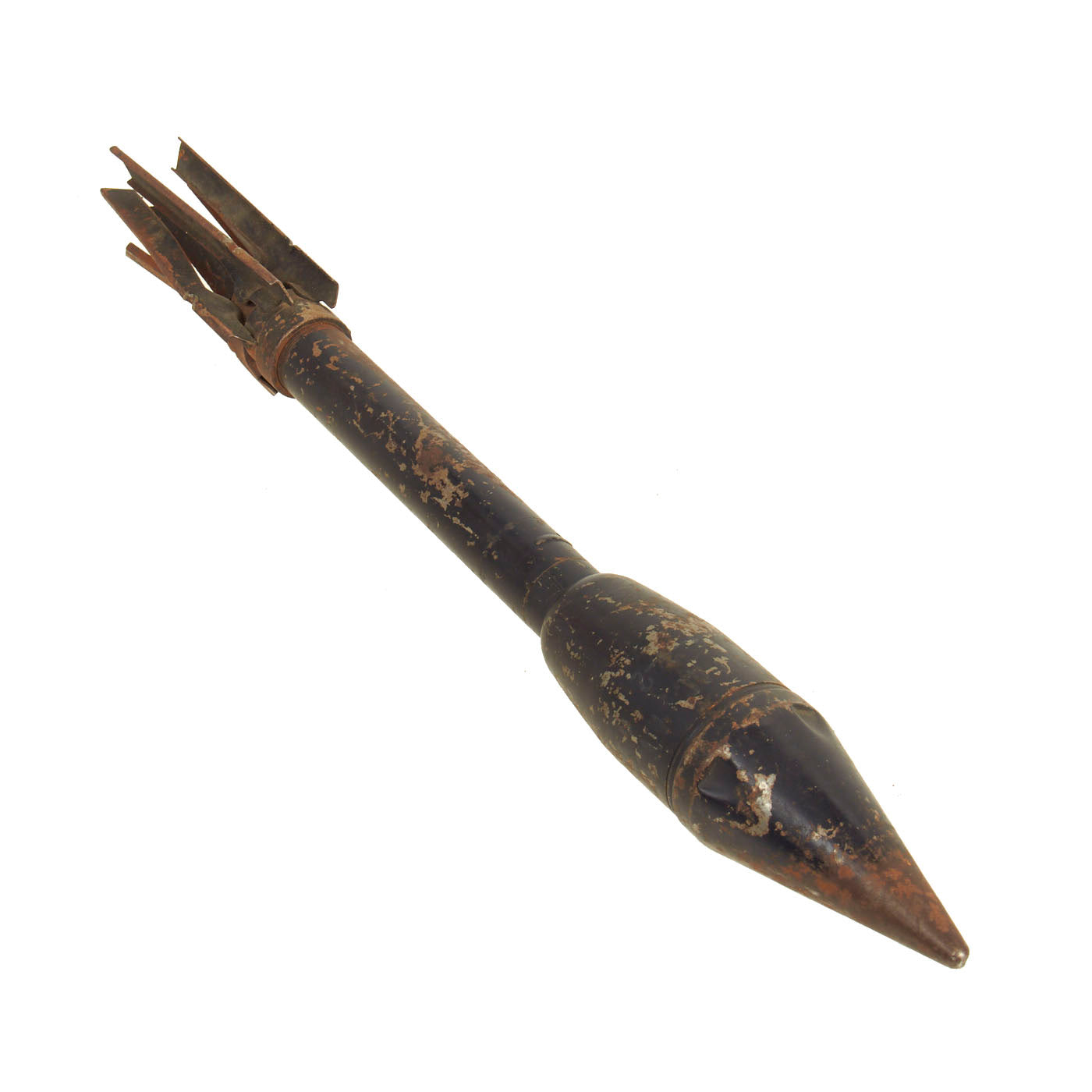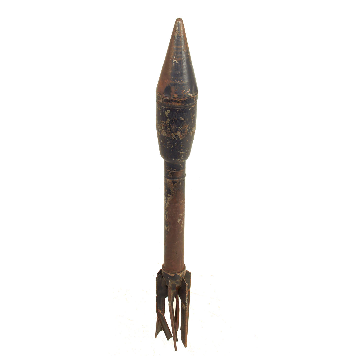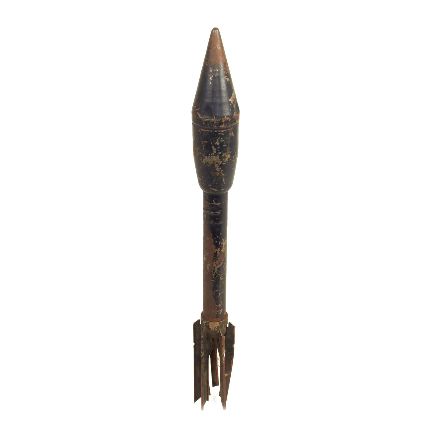 Original Item: Only One Available. This is a very nice original WWII inert M7A1 rocket for the U.S. WWII 2.36 inch M1 / M1A1 Bazooka. The 2.36" rocket consists of a head, a stabilizer tube, and tail. The rocket is totally inert and complies with standards outlined by BATF and is not available for export.
