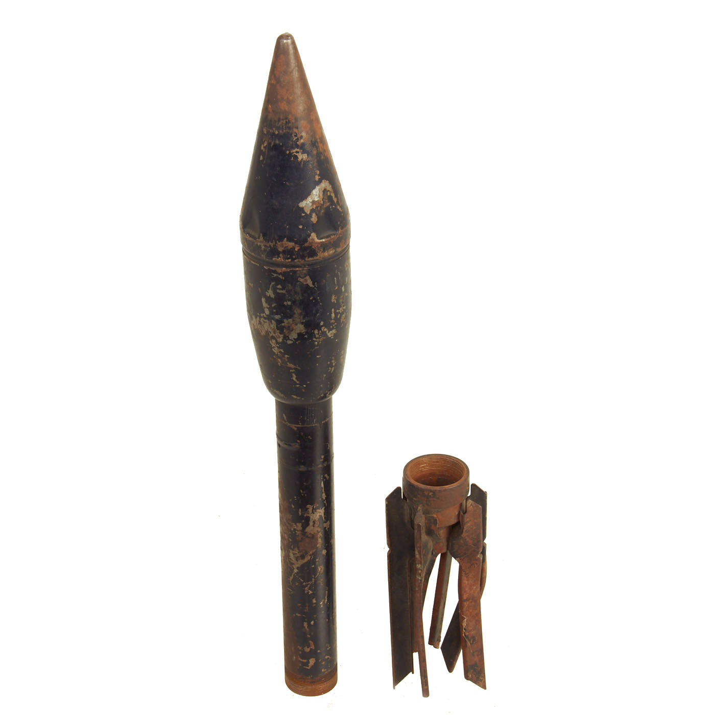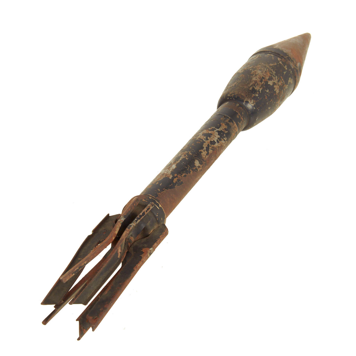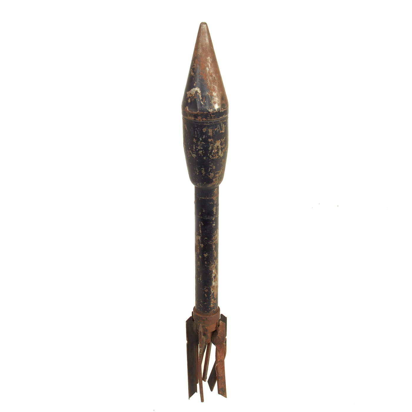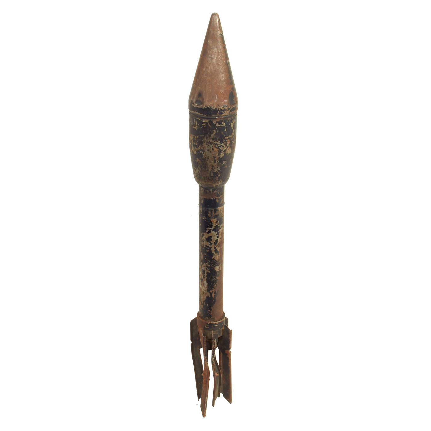 Original Item: Only One Available. This is a very nice original WWII inert M7A1 rocket for the U.S. WWII 2.36 inch M1 / M1A1 Bazooka. The 2.36" rocket consists of a head, a stabilizer tube, and tail. The rocket is totally inert and complies with standards outlined by BATF and is not available for export.
