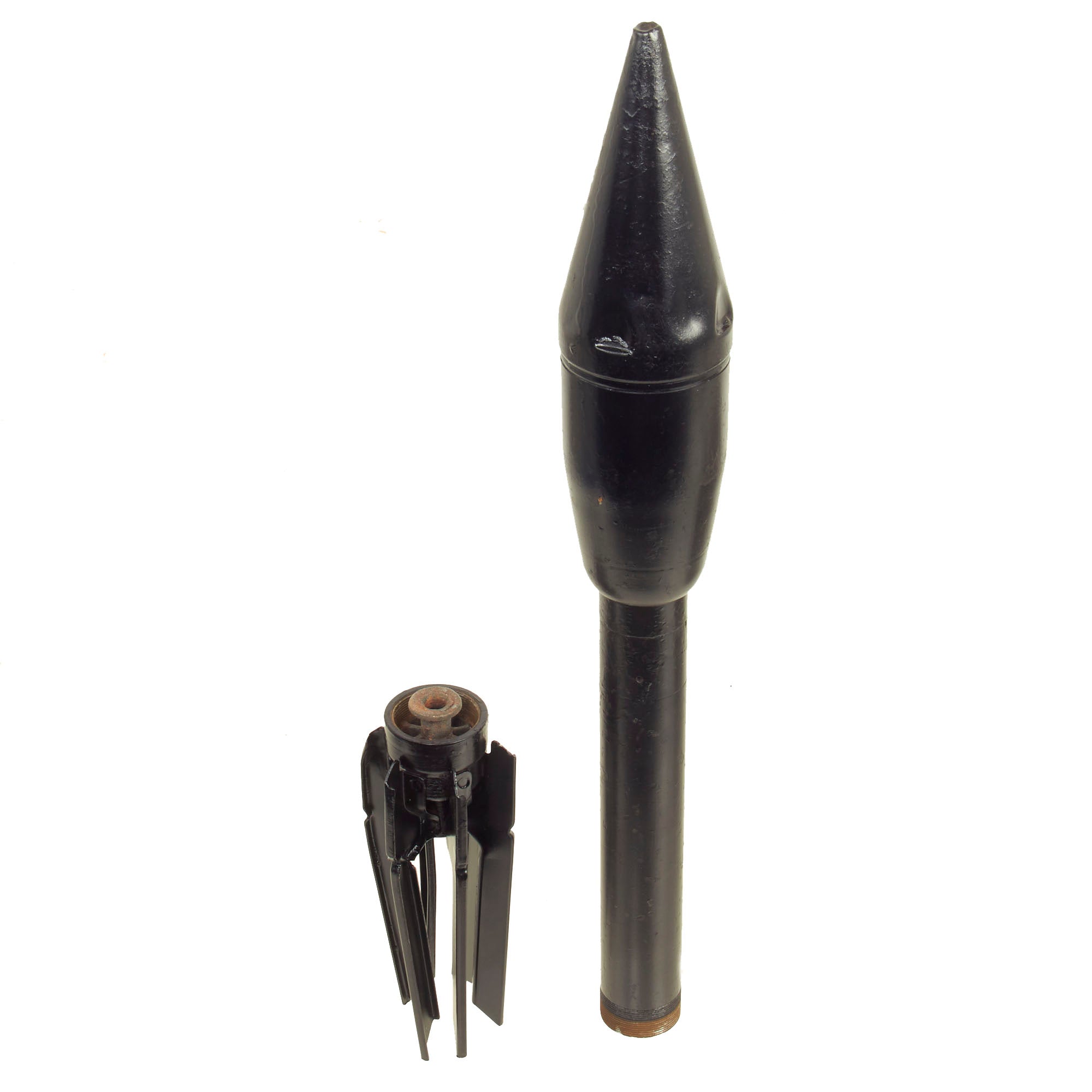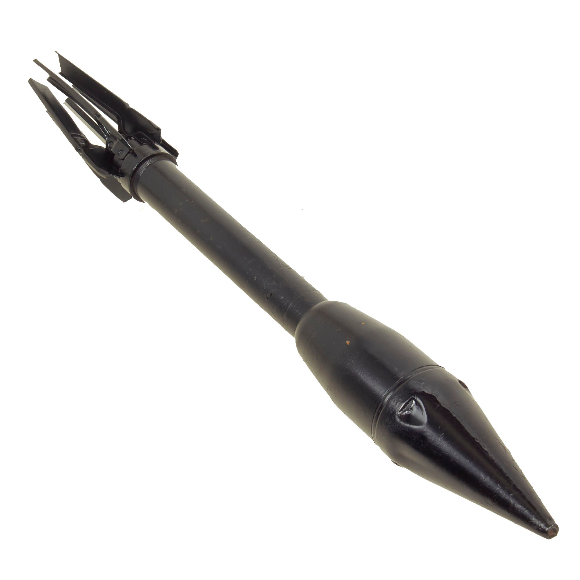 Original Item: Only One Available. This is a very nice original WWII inert M7A1 rocket for the U.S. WWII 2.36 inch M1 / M1A1 Bazooka. Normally, the 2.36" rocket consists of a head, a stabilizer tube, and tail, however, this example does not have the counterweight used for stability present. The rocket is totally inert and complies with standards outlined by BATF and is not available for export.