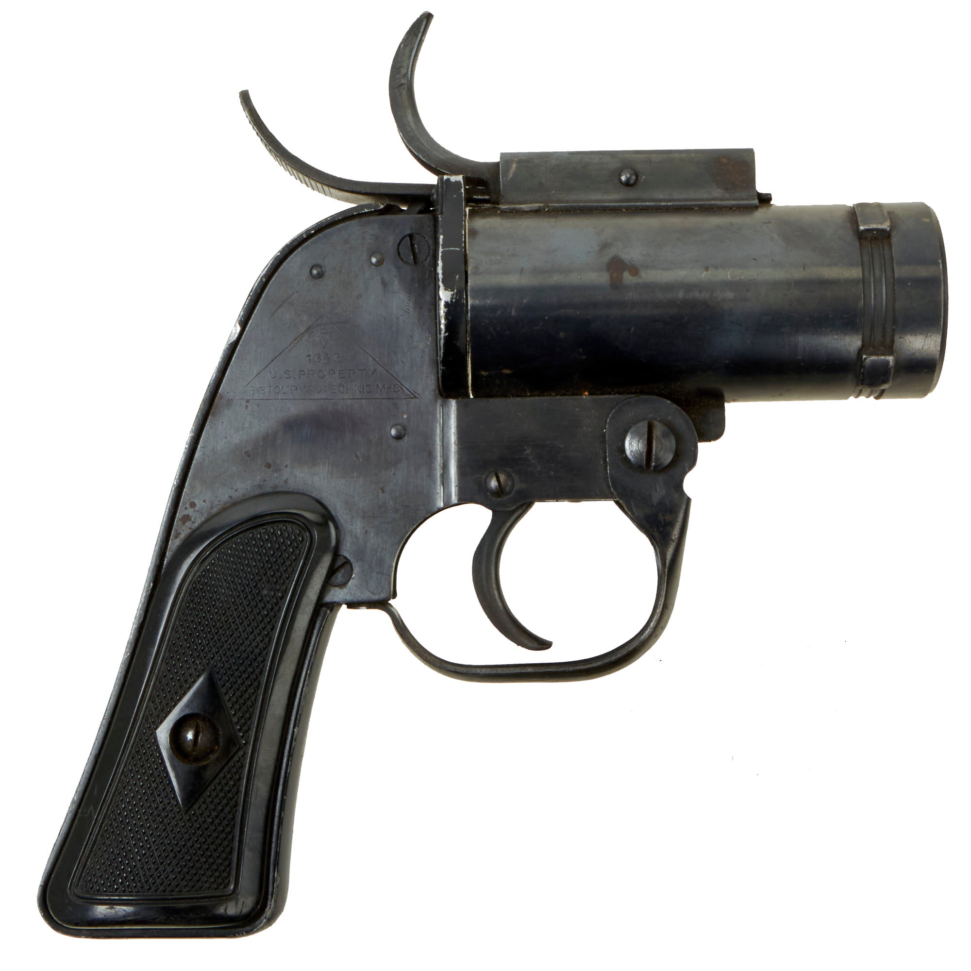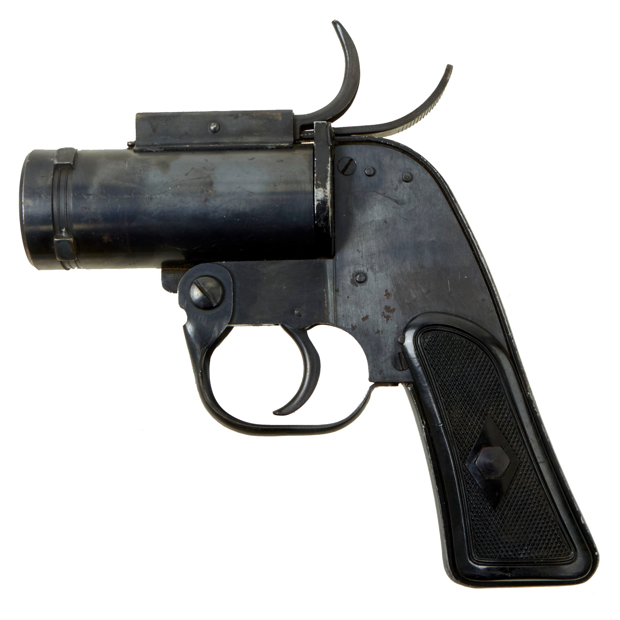 Original Item: Only One Available. Very nice condition 37mm big-bore signal pistol of WW2. The barrel has studs for attachment to a flare port in the fuselage of large aircraft such as bombers. The right side of the frame is marked inside a triangle: