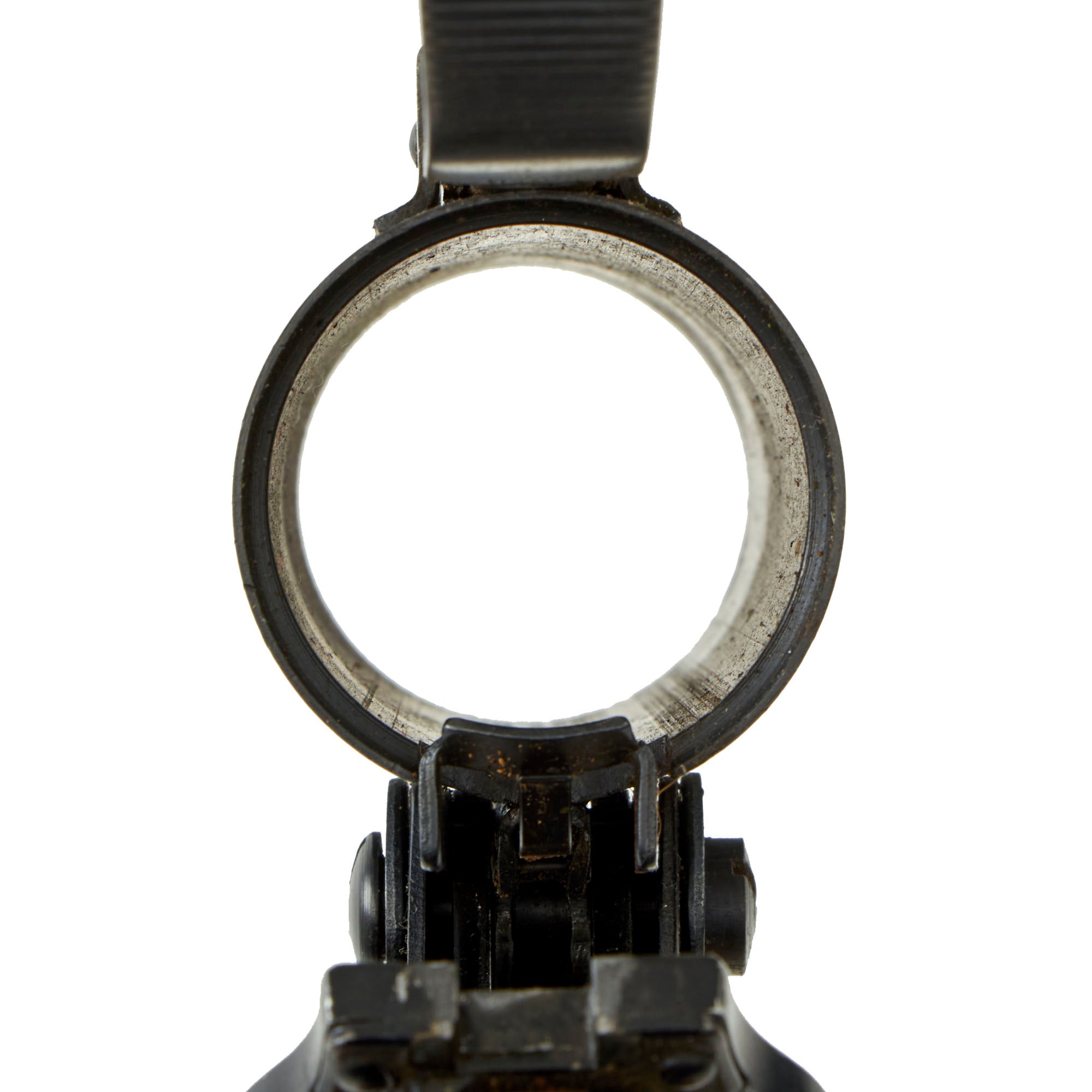 The two levers on the top of the barrel give it a very unique look. The top hook shaped lever when pulled back allows the pistol to be installed or removed from the M1 mount in an aircraft.