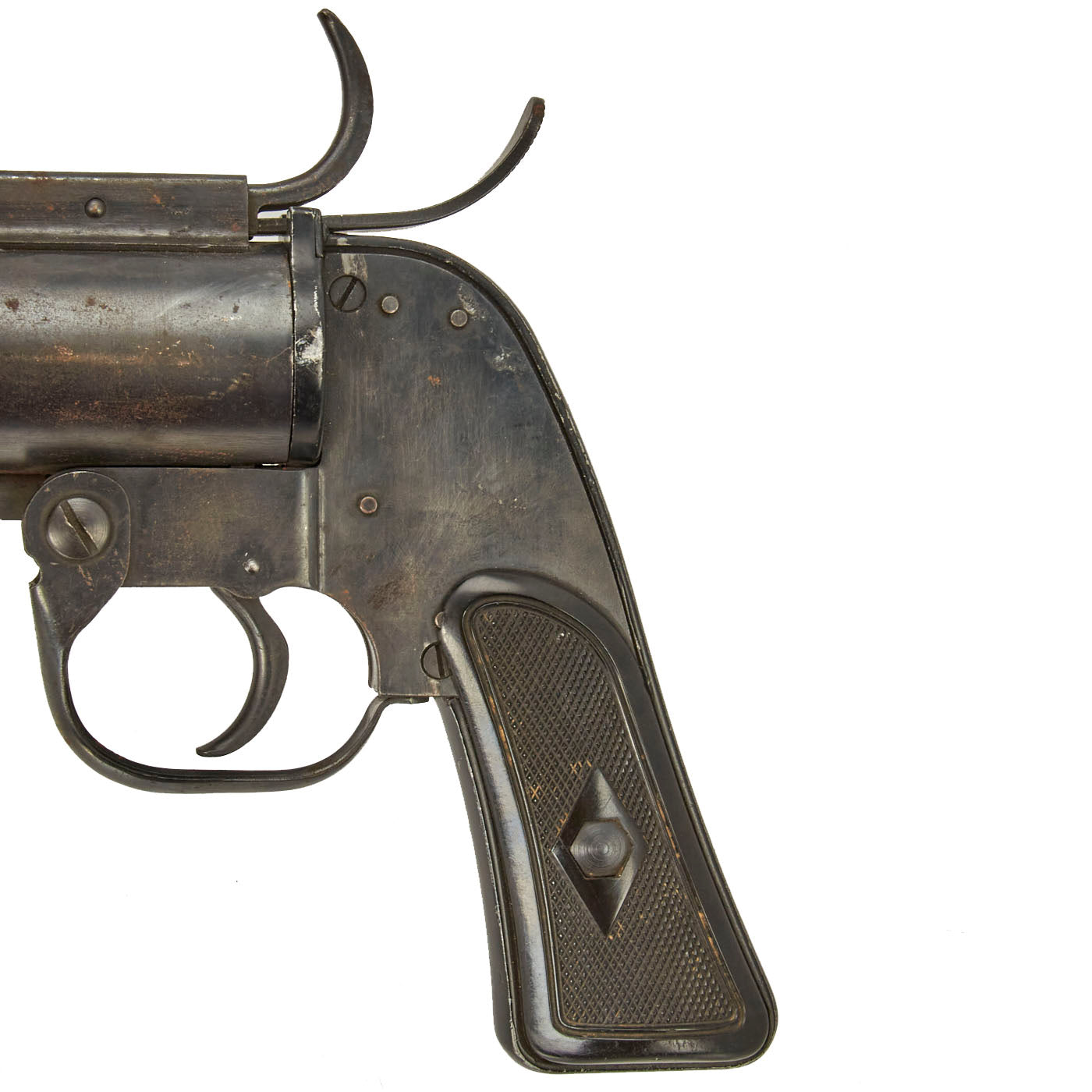 Original Item: Only One Available. Very nice condition 37mm big-bore signal pistol of WW2. The barrel has studs for attachment to a flare port in the fuselage of large aircraft such as bombers. The right side of the frame is marked inside a triangle: