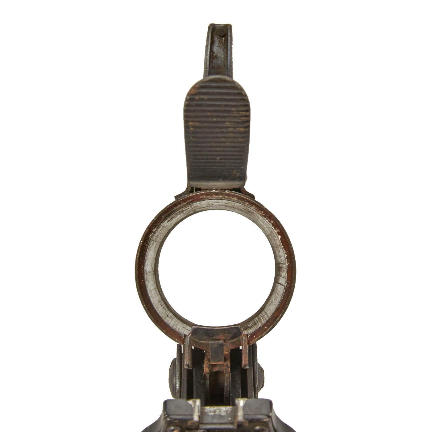 The two levers on the top of the barrel give it a very unique look. The top hook shaped lever when pulled back allows the pistol to be installed or removed from the M1 mount in an aircraft.