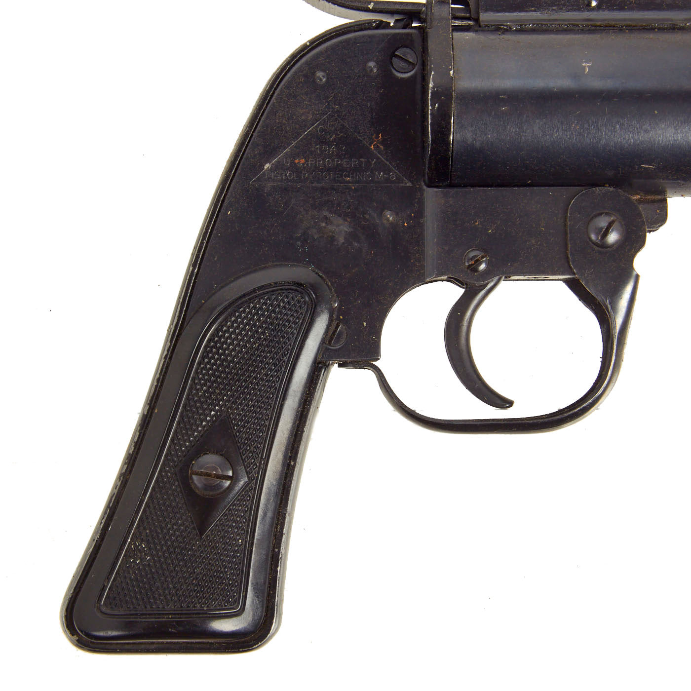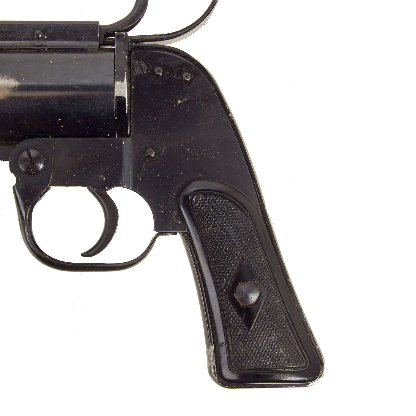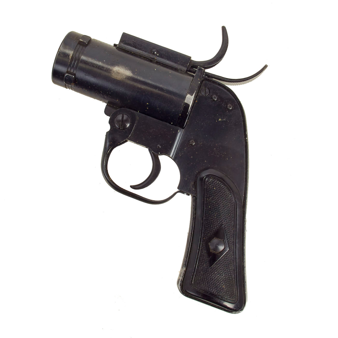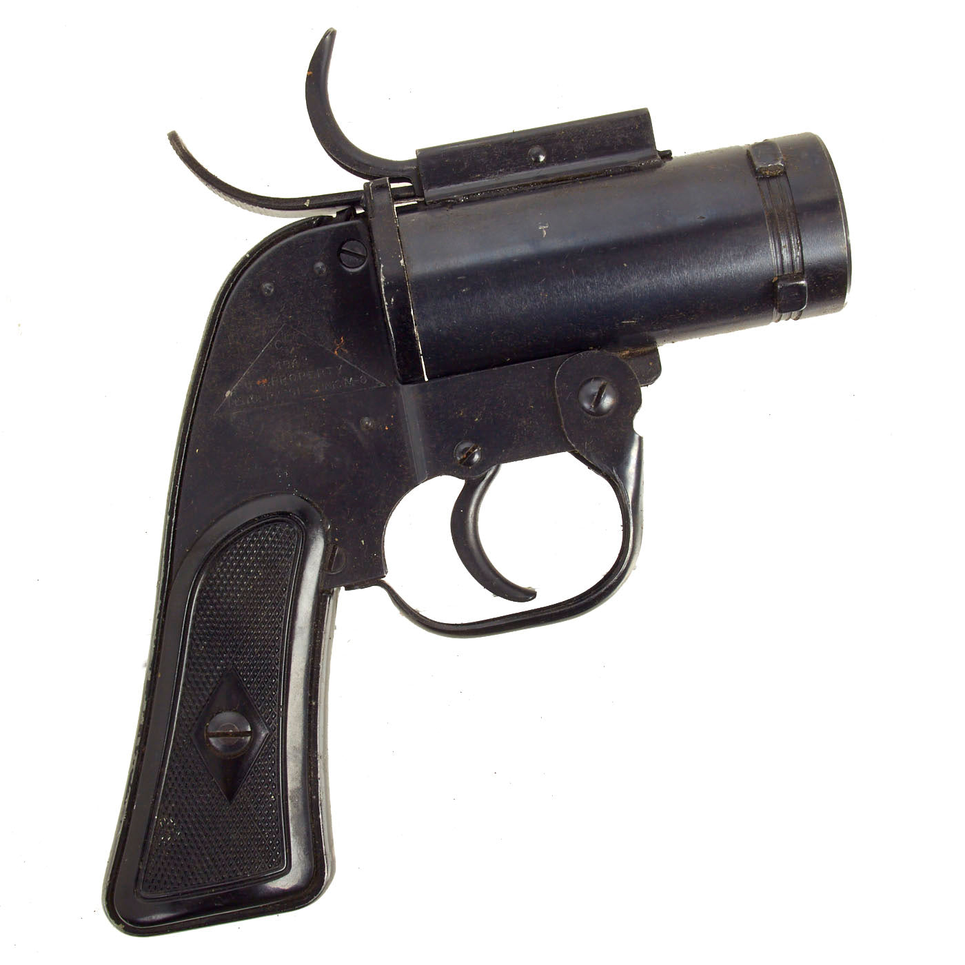 Original Item: Only One Available. Very nice condition 37mm big-bore signal pistol of WW2. The barrel has studs for attachment to a flare port in the fuselage of large aircraft such as bombers. The right side of the frame is marked inside a triangle: