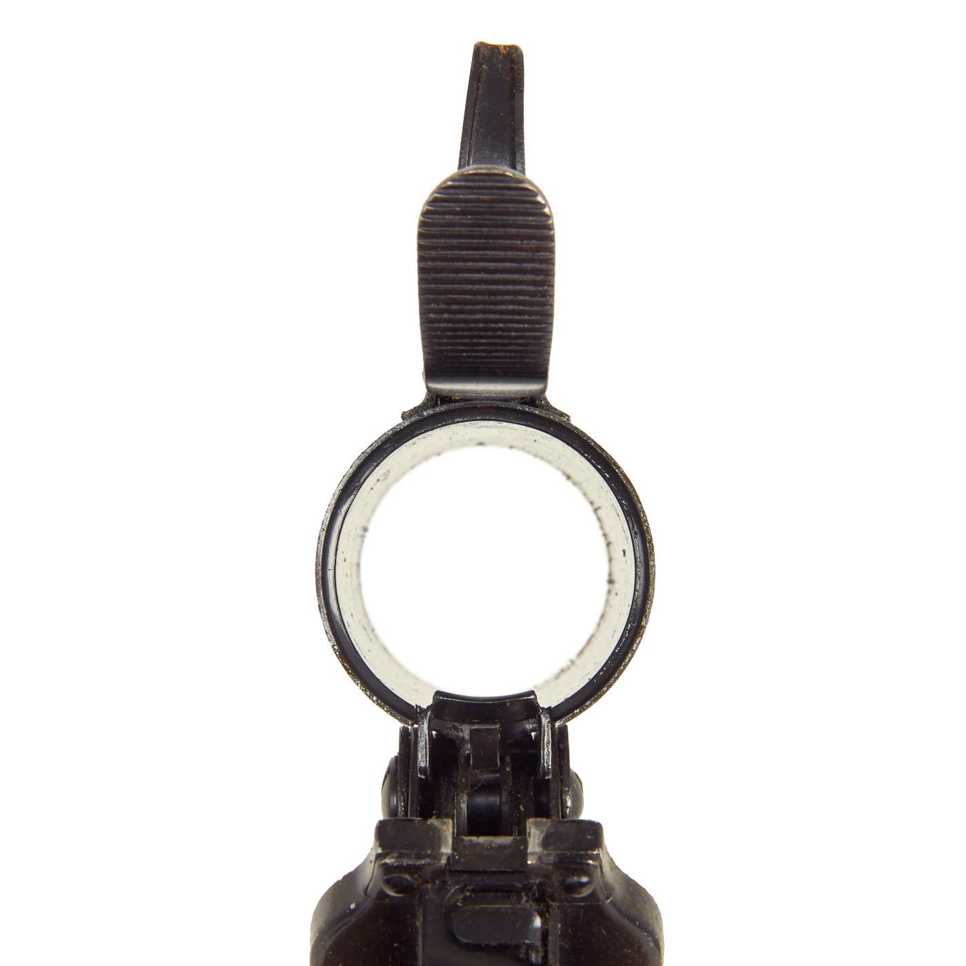 The two levers on the top of the barrel give it a very unique look. The top hook shaped lever when pulled back allows the pistol to be installed or removed from the M1 mount in an aircraft.