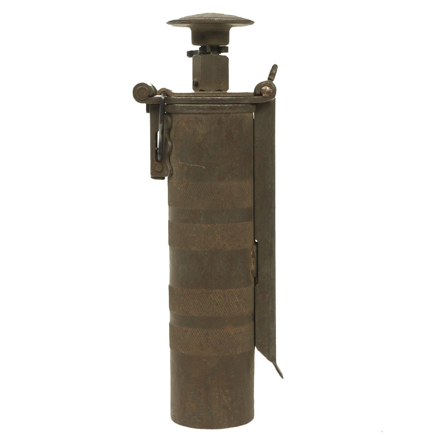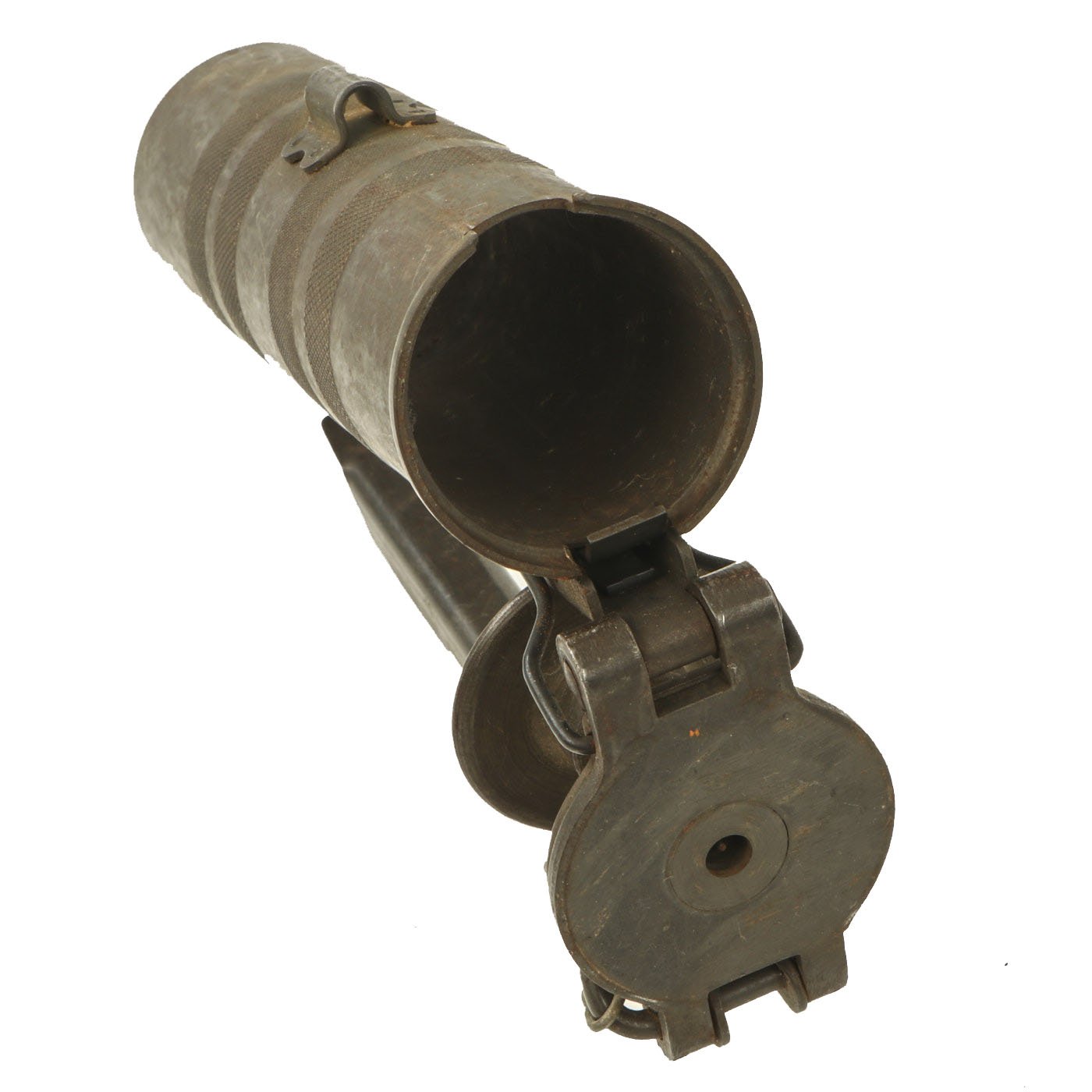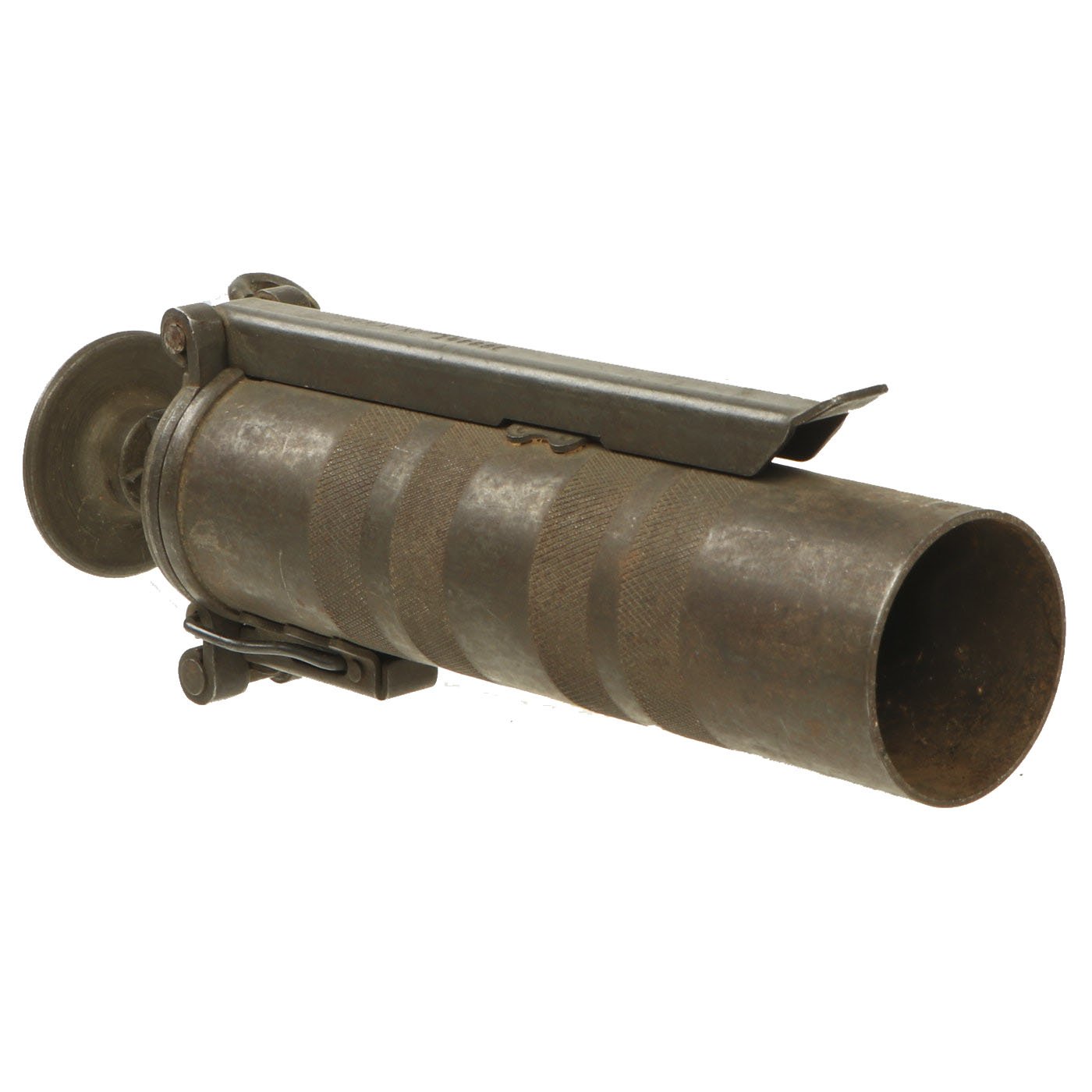 Original Item: Only One Available. Manufactured by G.R.B. Co. - The M9 hand pyrotechnic launcher is a manually operated, muzzle loading projector developed by Eureka Vacuum Co. The device was used during WWII for projecting flares or signals for signaling between ground troops or front ground troop to aircraft.