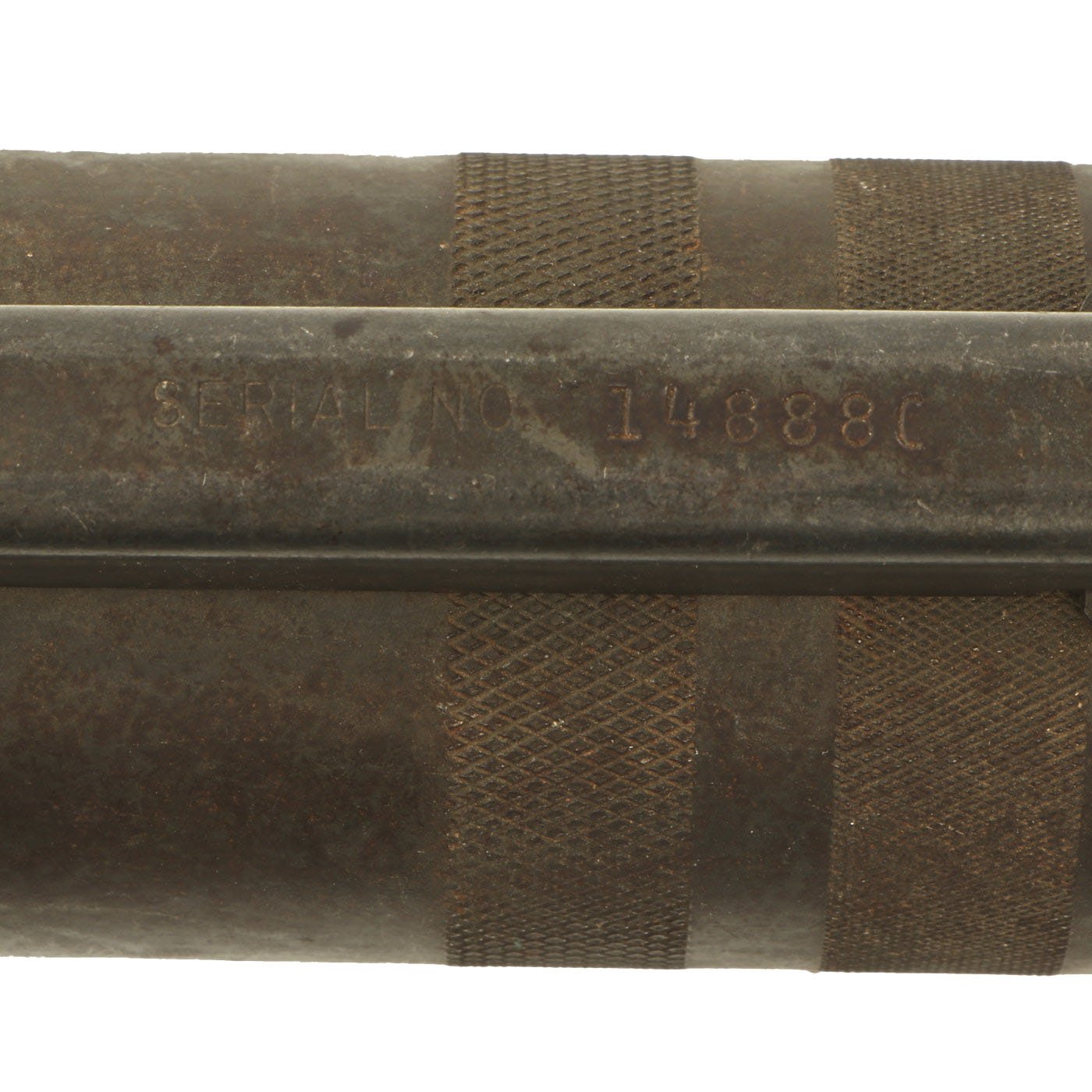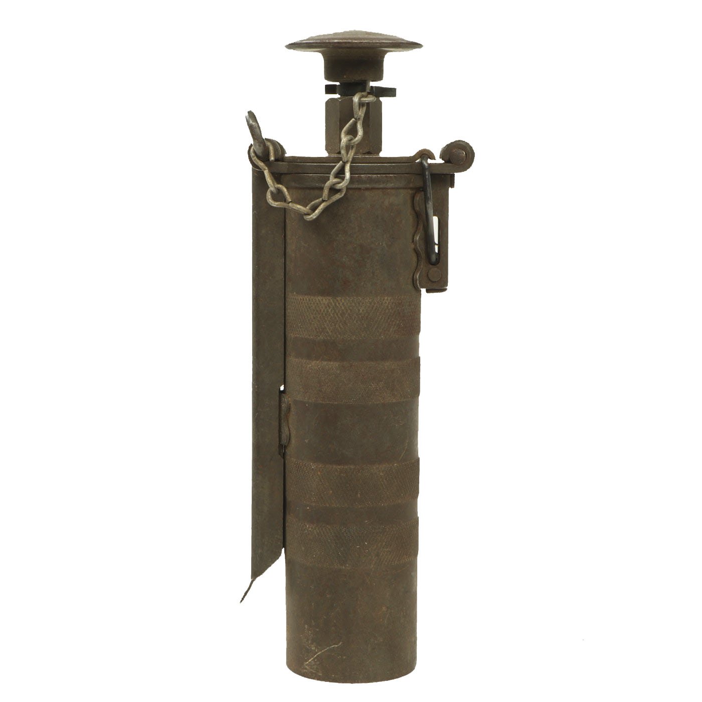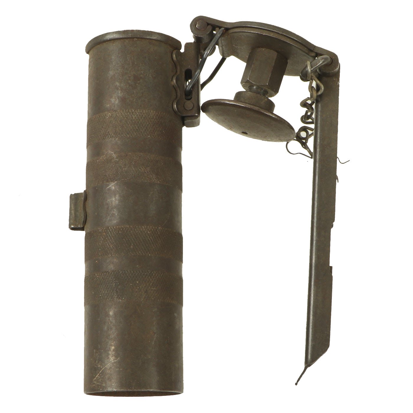 Original Item: Only One Available. Manufactured by G.R.B. Co. - The M9 hand pyrotechnic launcher is a manually operated, muzzle loading projector developed by Eureka Vacuum Co. The device was used during WWII for projecting flares or signals for signaling between ground troops or front ground troop to aircraft.