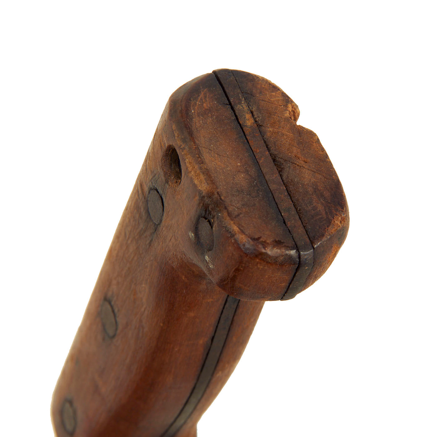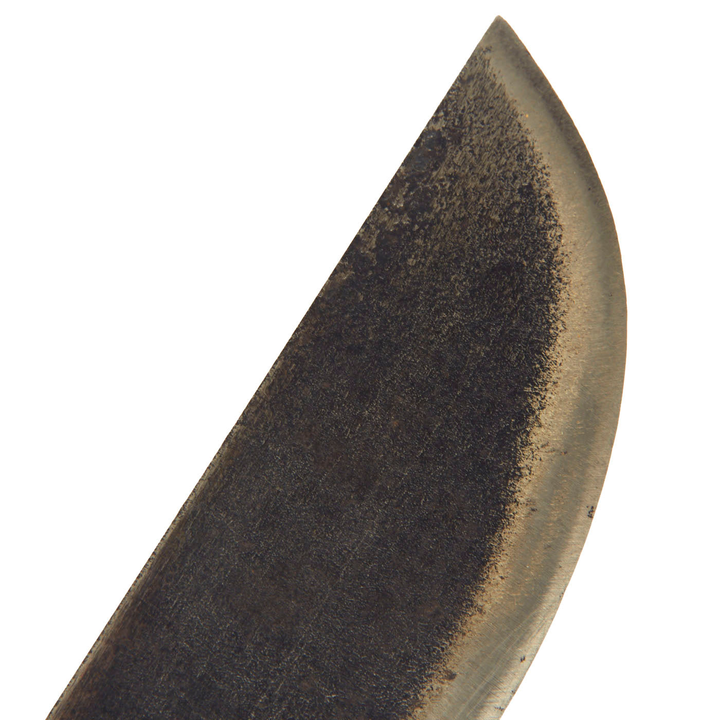 The machete is in wonderful, service used condition without any extensive damage present. There is some staining and pitting to the blade and the wood grip scales are somewhat loose. The edge is still nice and sharp.