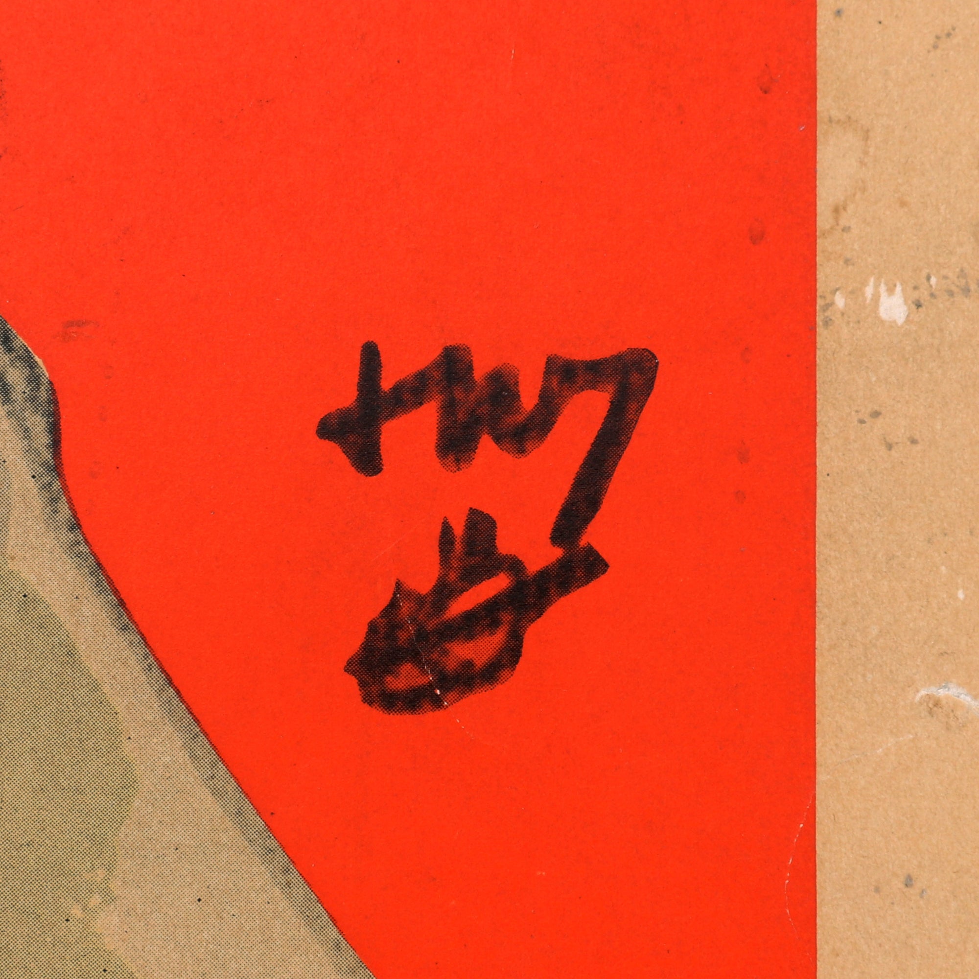 The poster is in fair shape overall and has some tears, specifically in the top middle and bottom middle, and some water damage in the top left. The poster has been mounted on what appears to be cardboard or linen. There are some more very small rips across the edges of the poster. A Very scarce example, the first of this design that we have offered! This example comes ready for framing and further research and display.