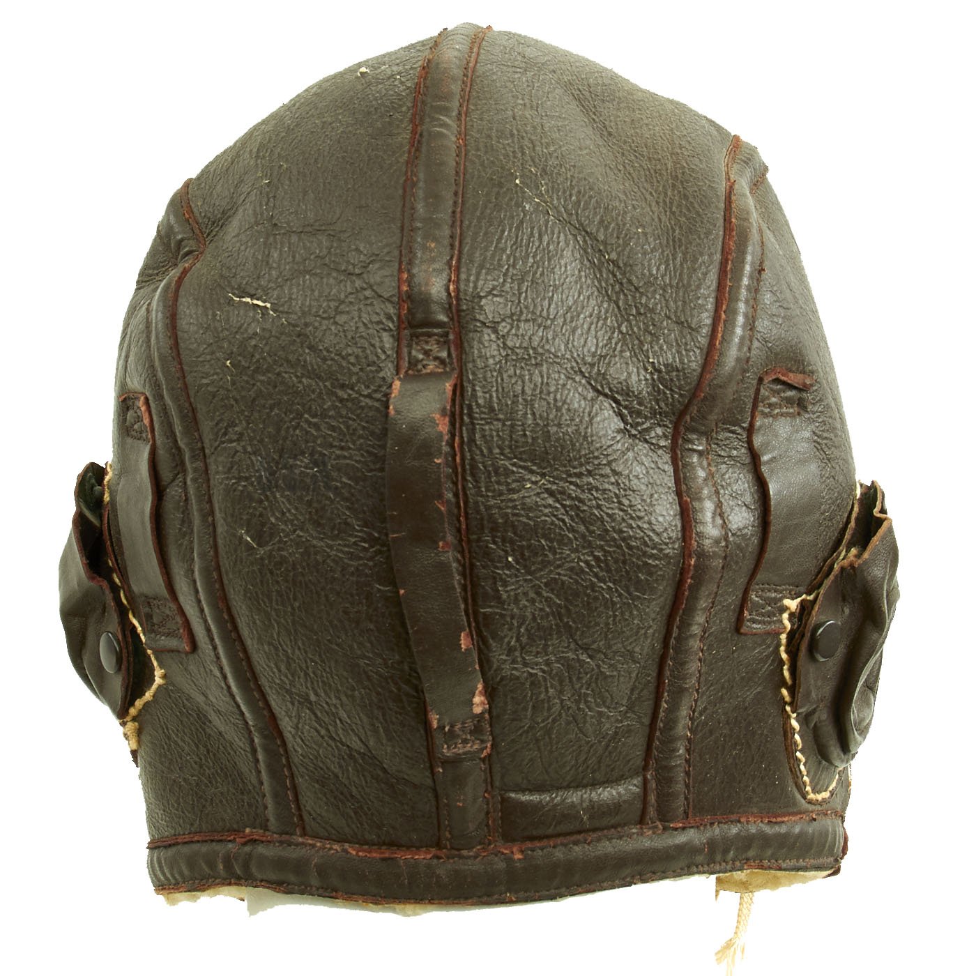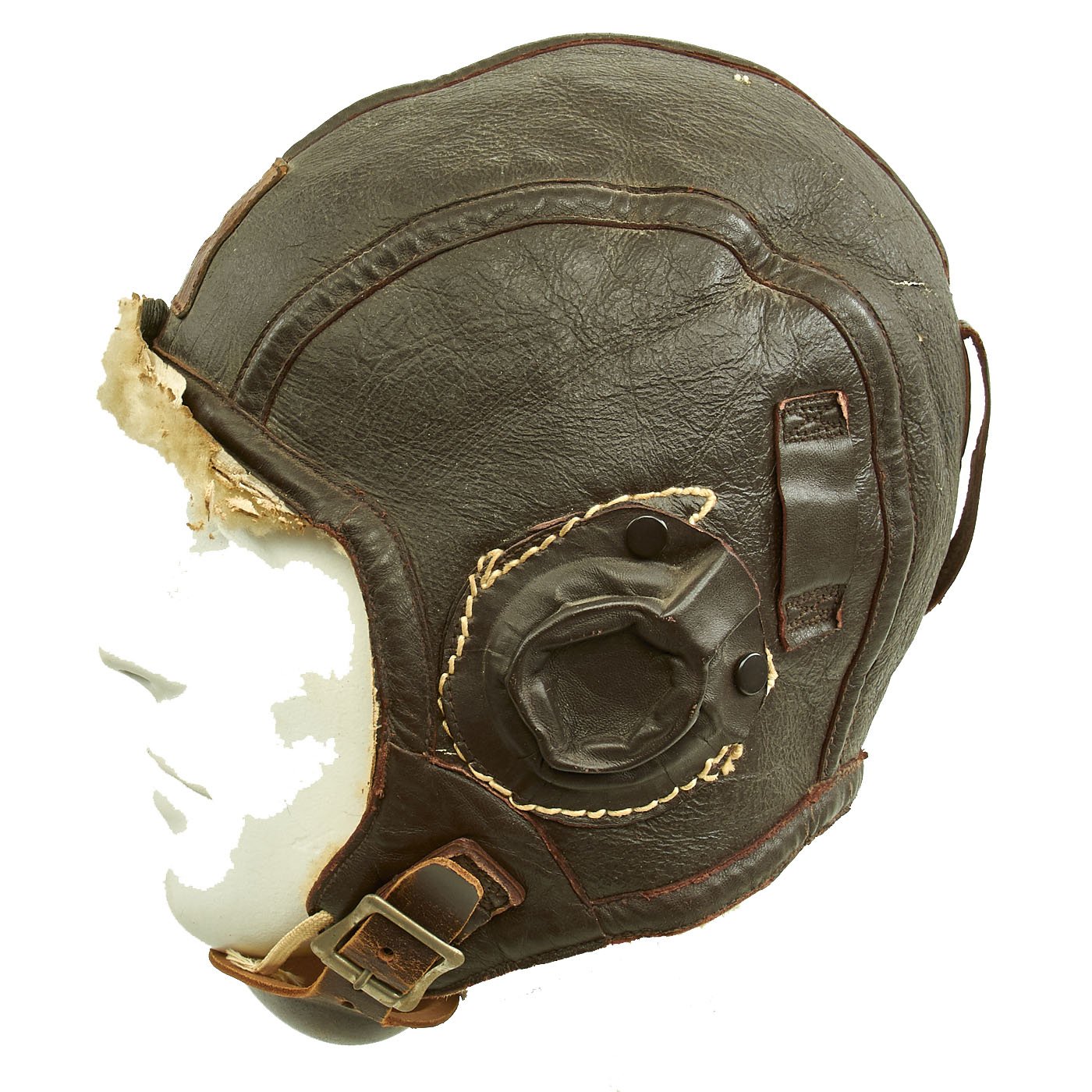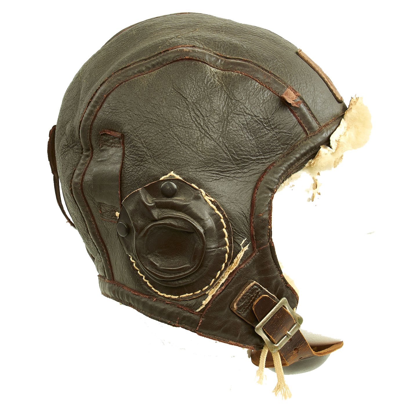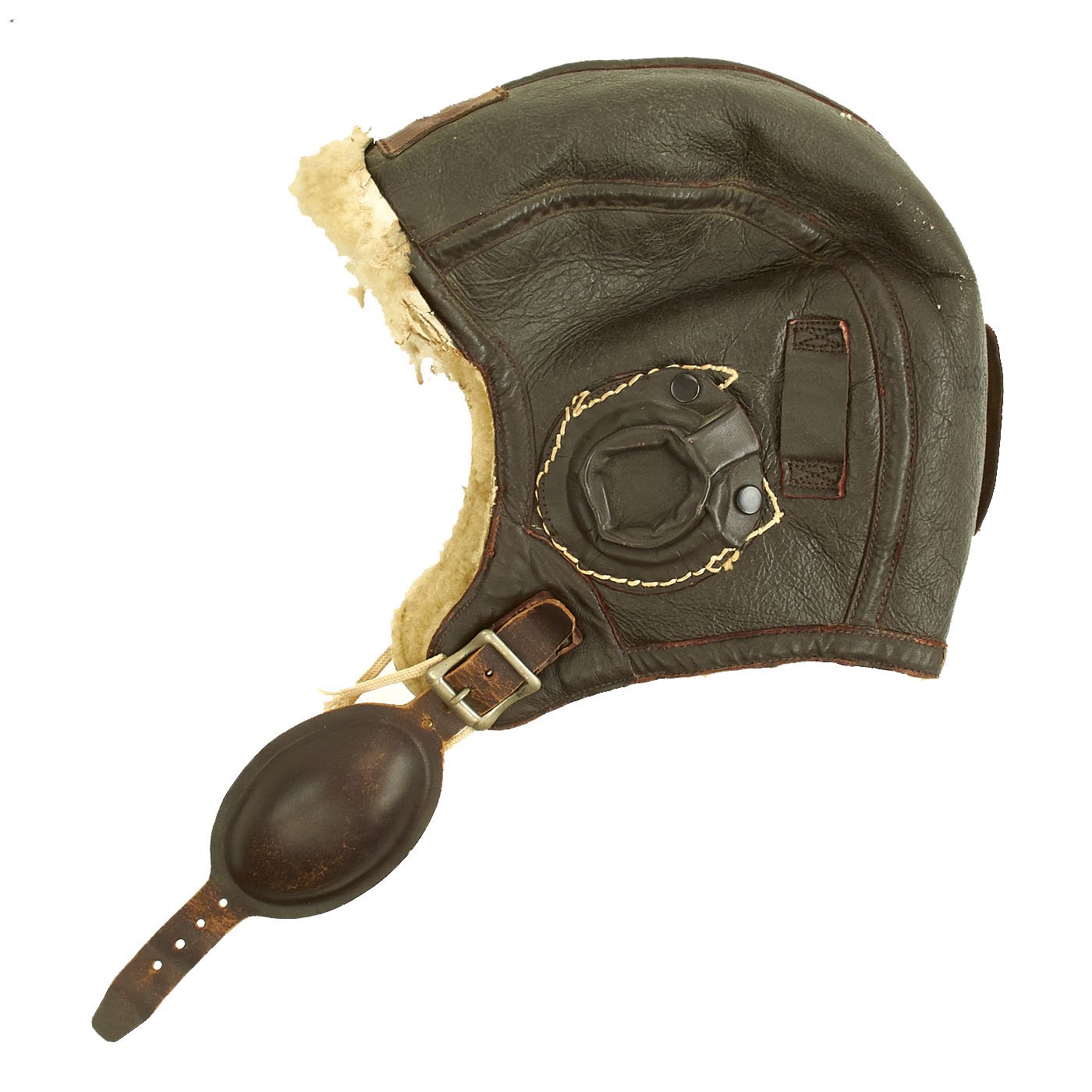 Original Item: Only One Available. The winter, shearling lined, version of the Naval Aircraft Factory (“NAF”) Model 1092 flight helmet used by Navy and Marine Corps aviators during the war. This example features a branded USMC EGA to the front and is offered in excellent near mint condition. It has the original data label that reads:
