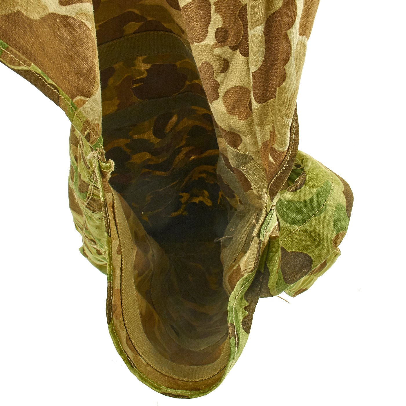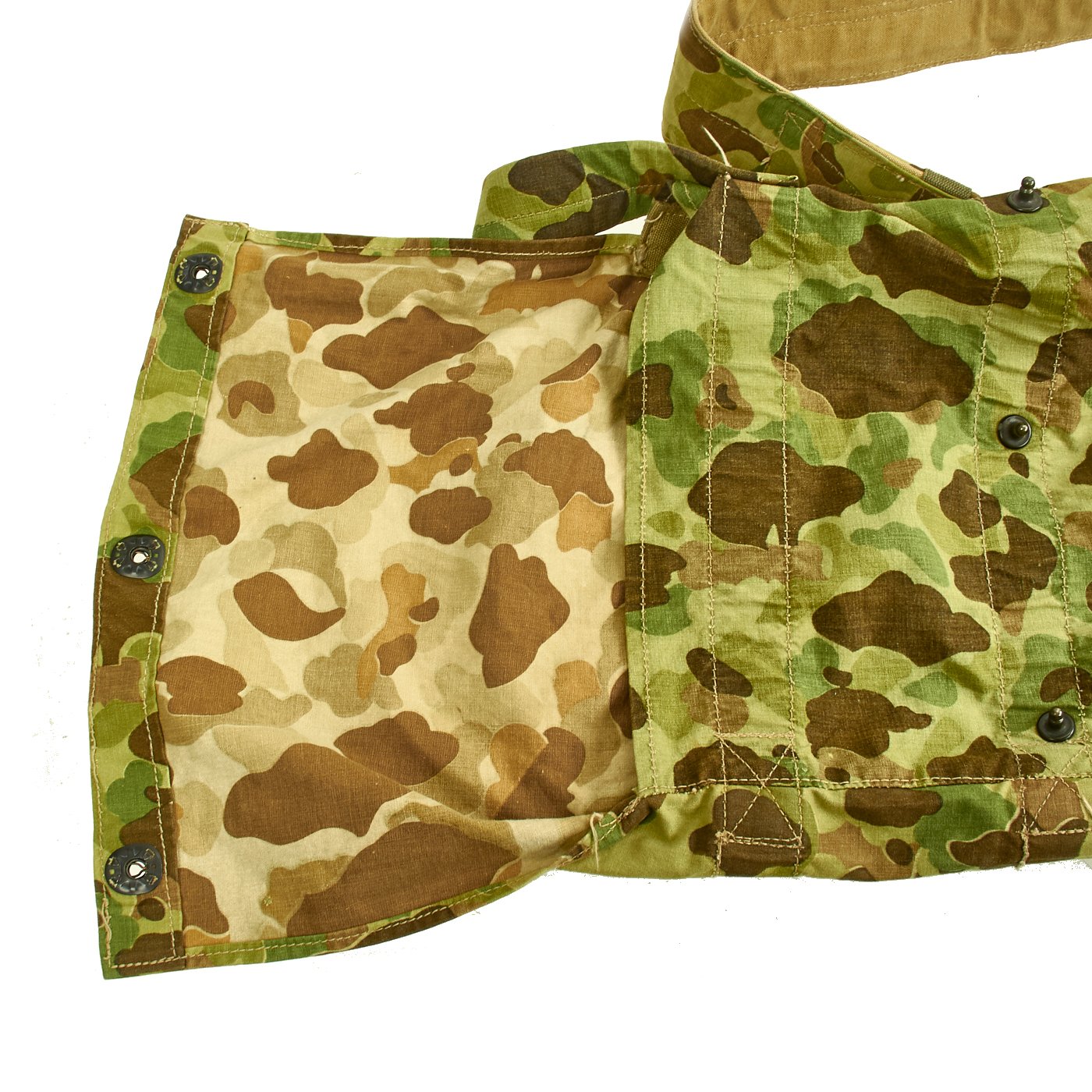 As the name implies, these bags were used with the two-part M9 Bazookas, and possibly the M20 Super Bazooka, though we have not been able to test the fit on one of those. It is constructed of USMC Double Sided camouflage canvas, though there is no way to reverse the bag and have it be functional.