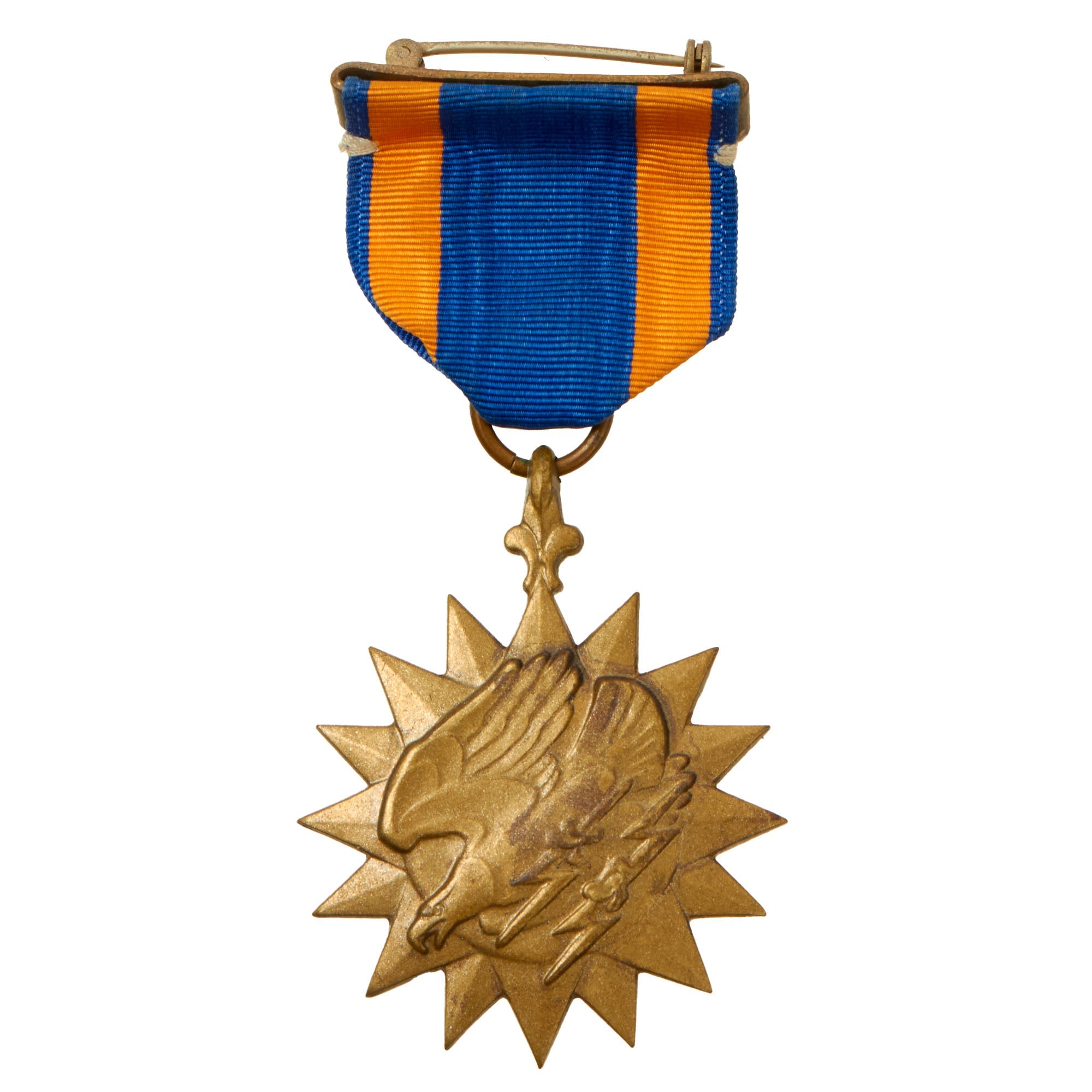 - Numbered Air Medal: Numbered 36750 on the brooch. The Air Medal is a military decoration awarded to members of the United States Armed Forces for meritorious achievement or acts of heroism while participating in aerial flight.