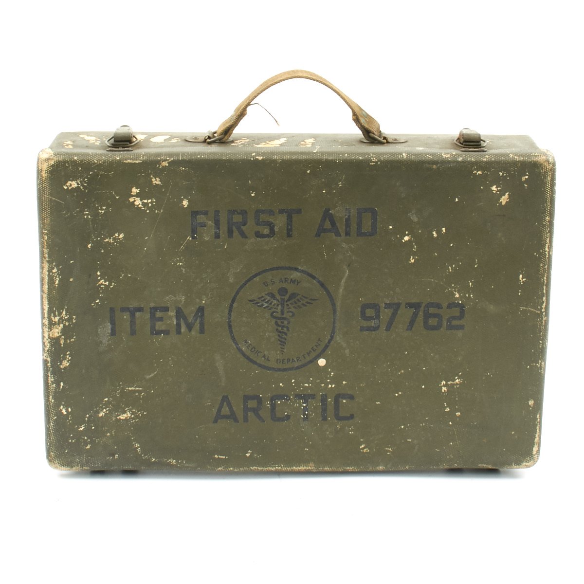 The Experimental Board, Alaskan Department, which had been established during 1941 to conduct tests during maneuvers, conducted experiments to determine the appropriate items to be contained in medical chests and kits needed by small U.S. Army units. These kits when developed were confirmed by their use in the 1944 maneuvers. The Arctic First Aid Kit, was packaged in a small suitcase-sized case containing items deemed necessary for a small detachment, selected to remain usable under typical conditions in the Alaska zone of operations. The "Kit, First-Aid, Arctic, Complete" was assigned Medical Department No. 9776200 while the case alone was No. 9766200. These cases were used in the ETO during the Battle of the Bulge.