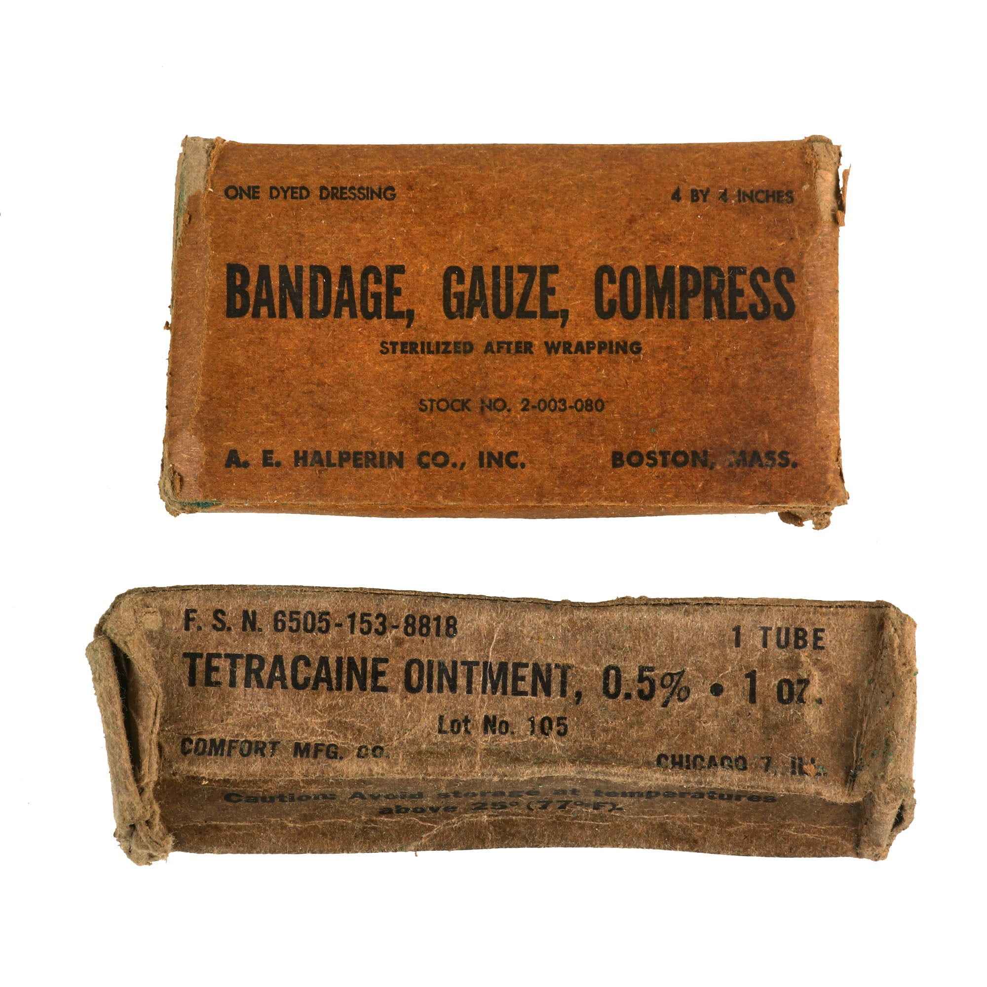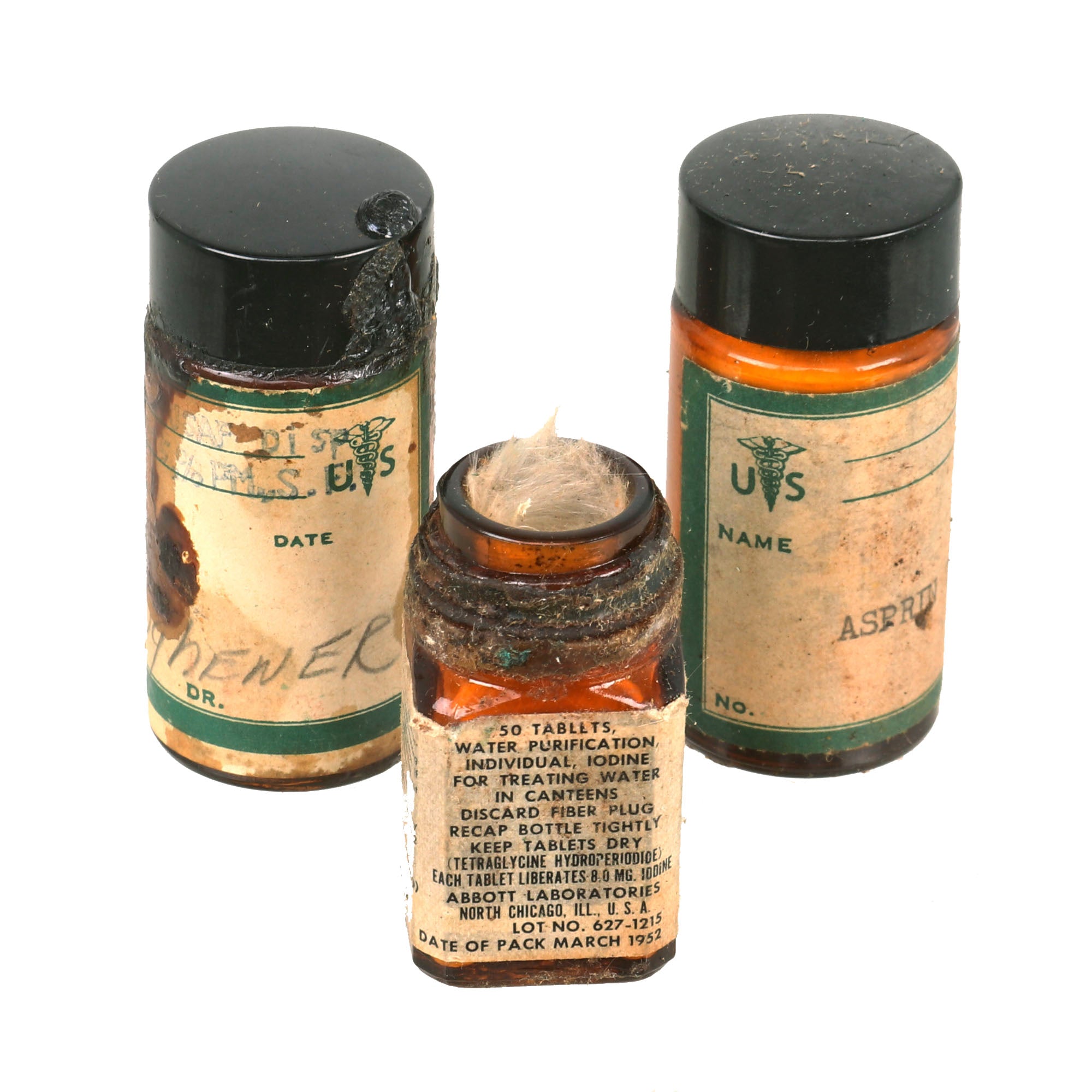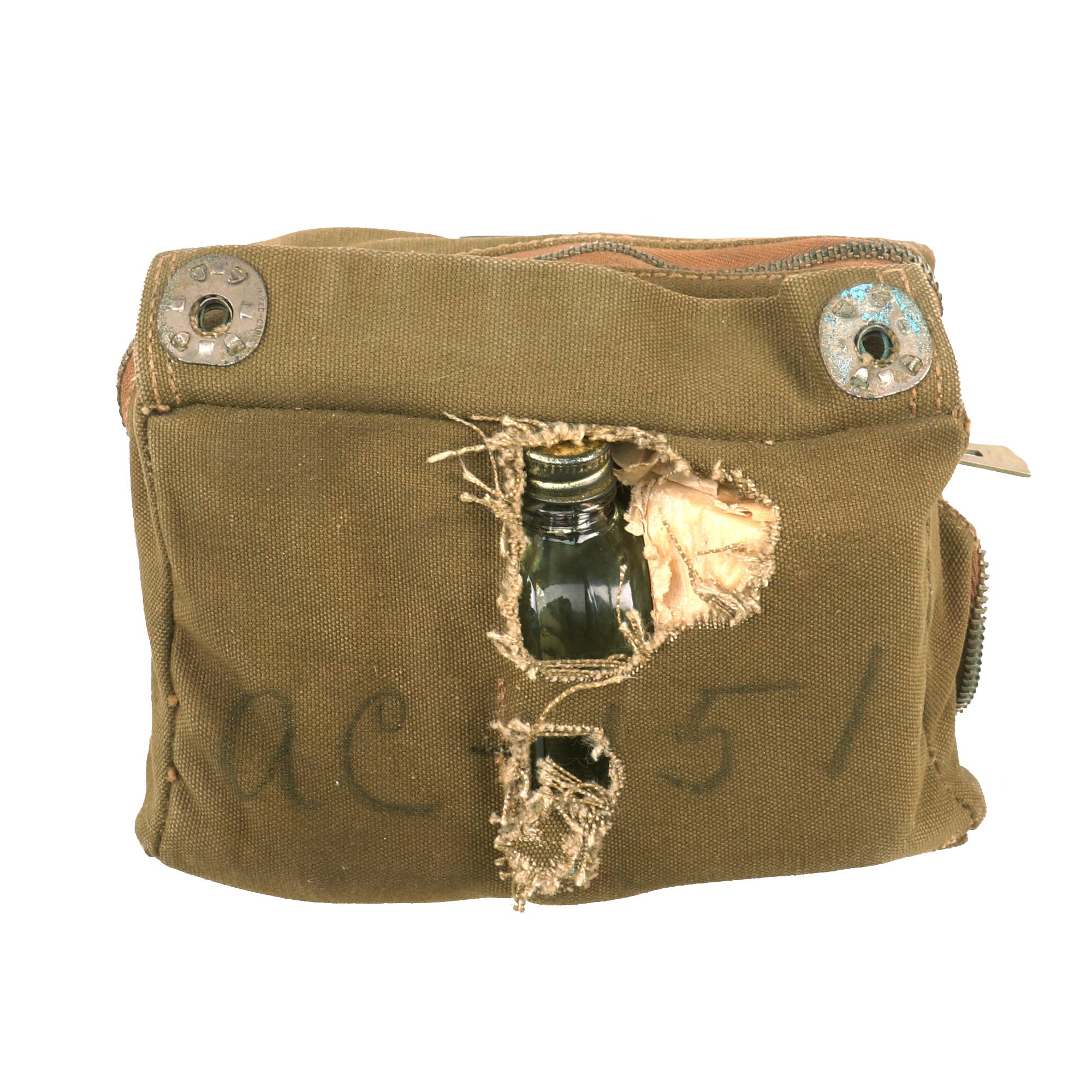 Original Item. Only One Available. This is a great set of medical equipment in its original zipper-pouch marked MEDICAL DEPARTMENT U.S.A.. Unfortunately, this pouch at one point was eaten at by a mouse, but most of the contents are undamaged. Some of the bottles are marked to the 6351st U.S.A.F. Dispensary.