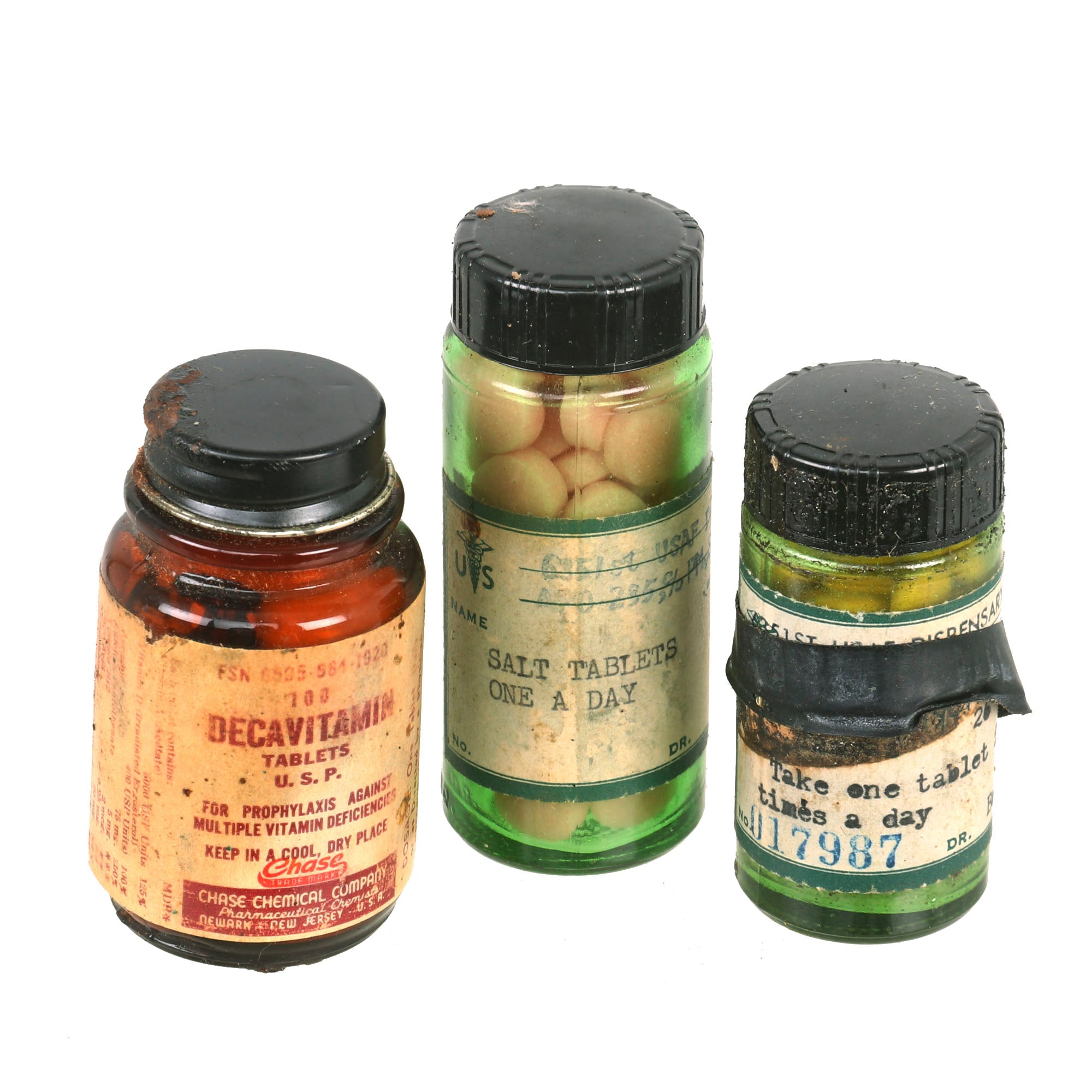 -One bottle of Salt Tablets, full. Marked to the 6351ST USAF DISPENSARY, RARE.