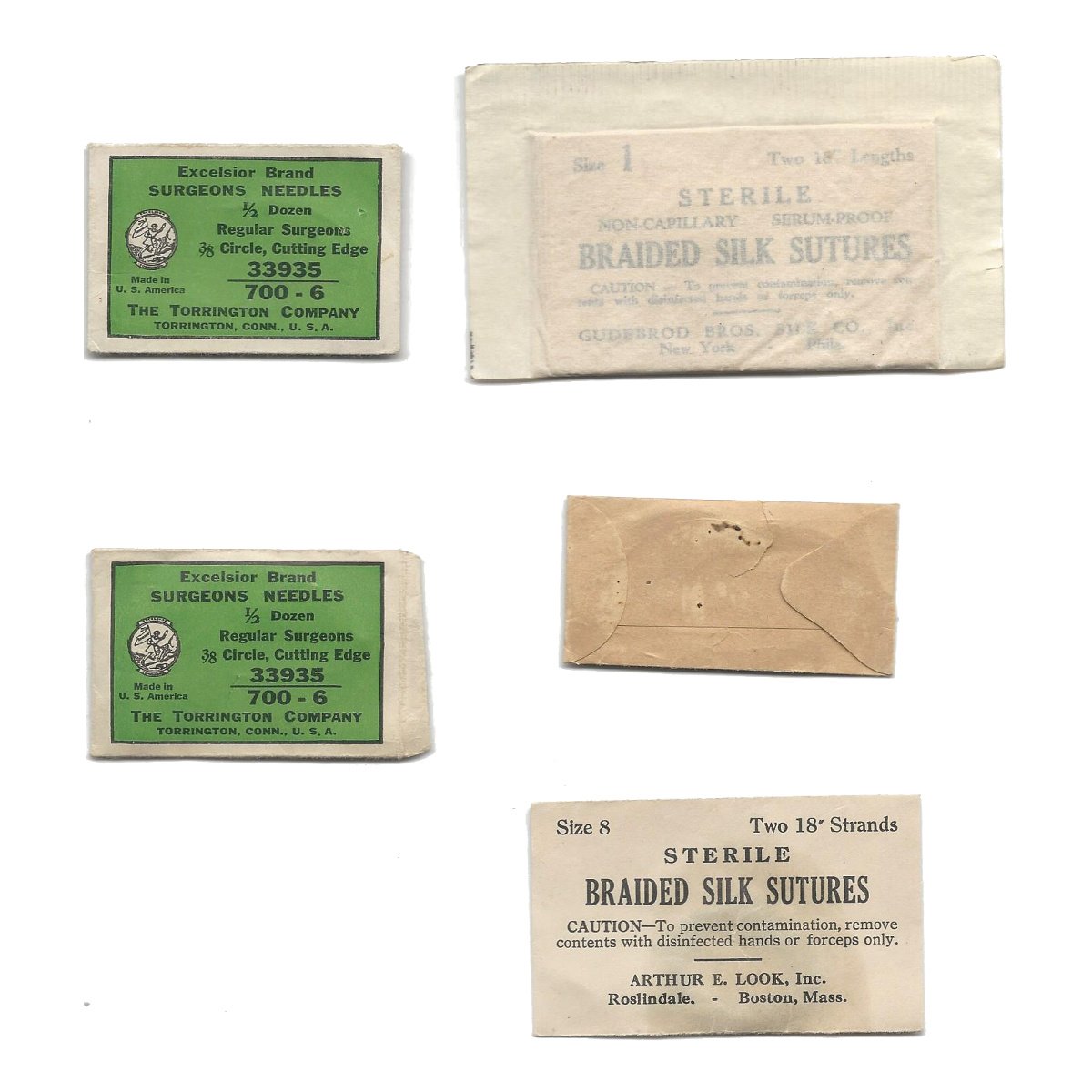 - 2 x sets of Braided Silk Sutures in original packaging.