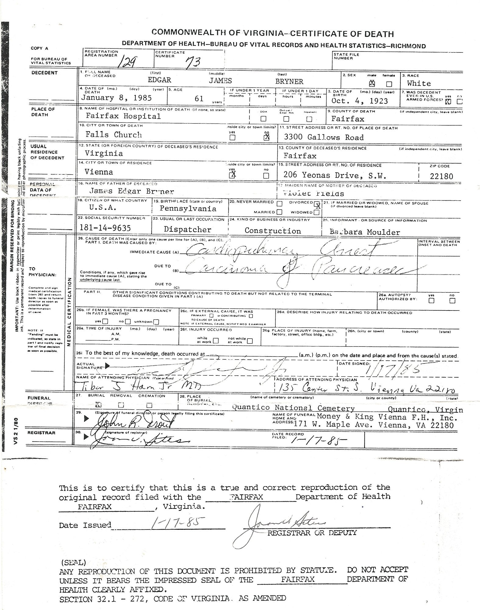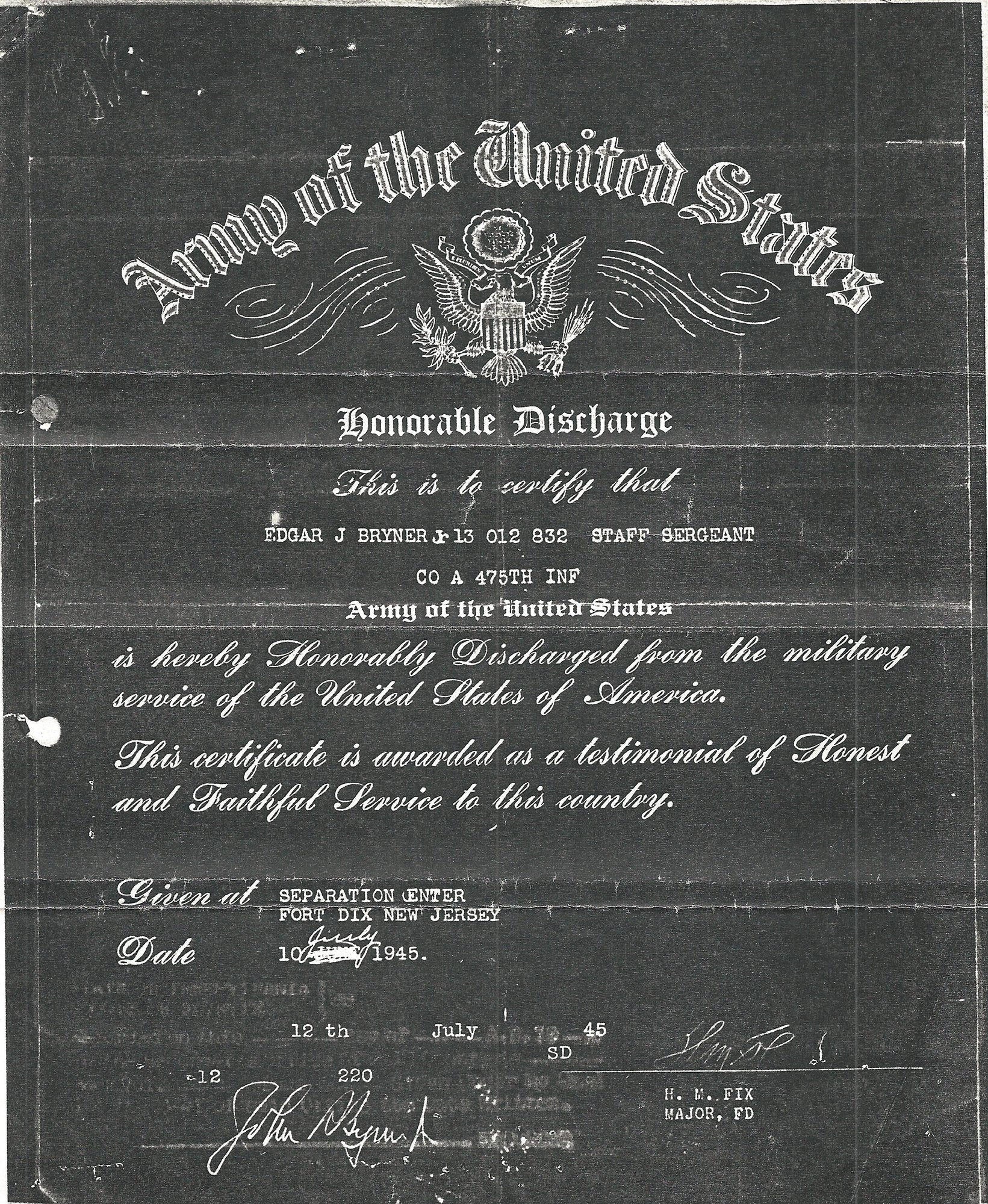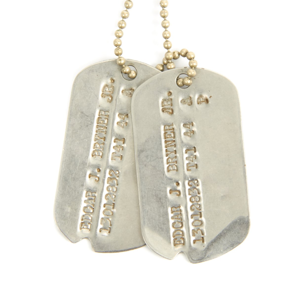 - Original Dog Tags that read EDGAR J. BRYNER JR. 130112832