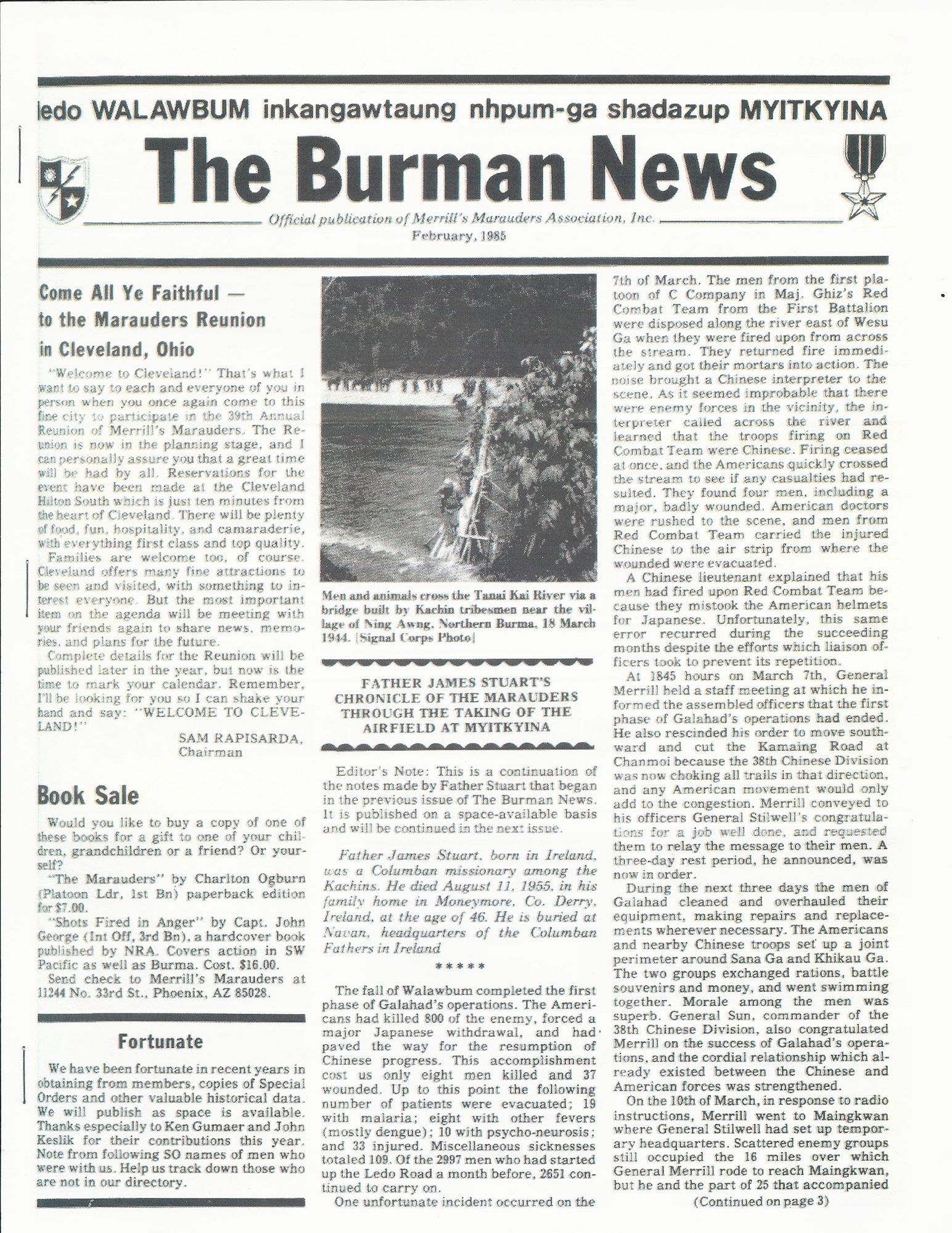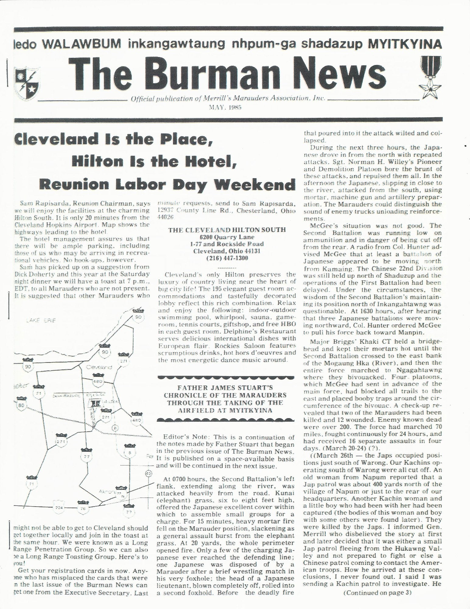 In Five major (WALAWBUM, SHADUZUP, INKANGAHTAWNG, NHPUM GA, & MYITKYINA) and thirty minor engagements, they defeated the veteran soldiers of the Japanese 18th Division (Conquerors of Singapore and Malaya) who vastly outnumbered the Marauders. Always moving to the rear of the main forces of the Japanese the Marauders completely disrupted the enemy supply and communication lines, and climaxed their behind the lines operations with the capture of Myitkyina Airfield, the only all-weather airfield in Northern Burma.