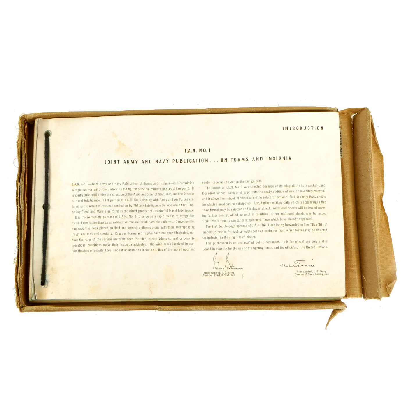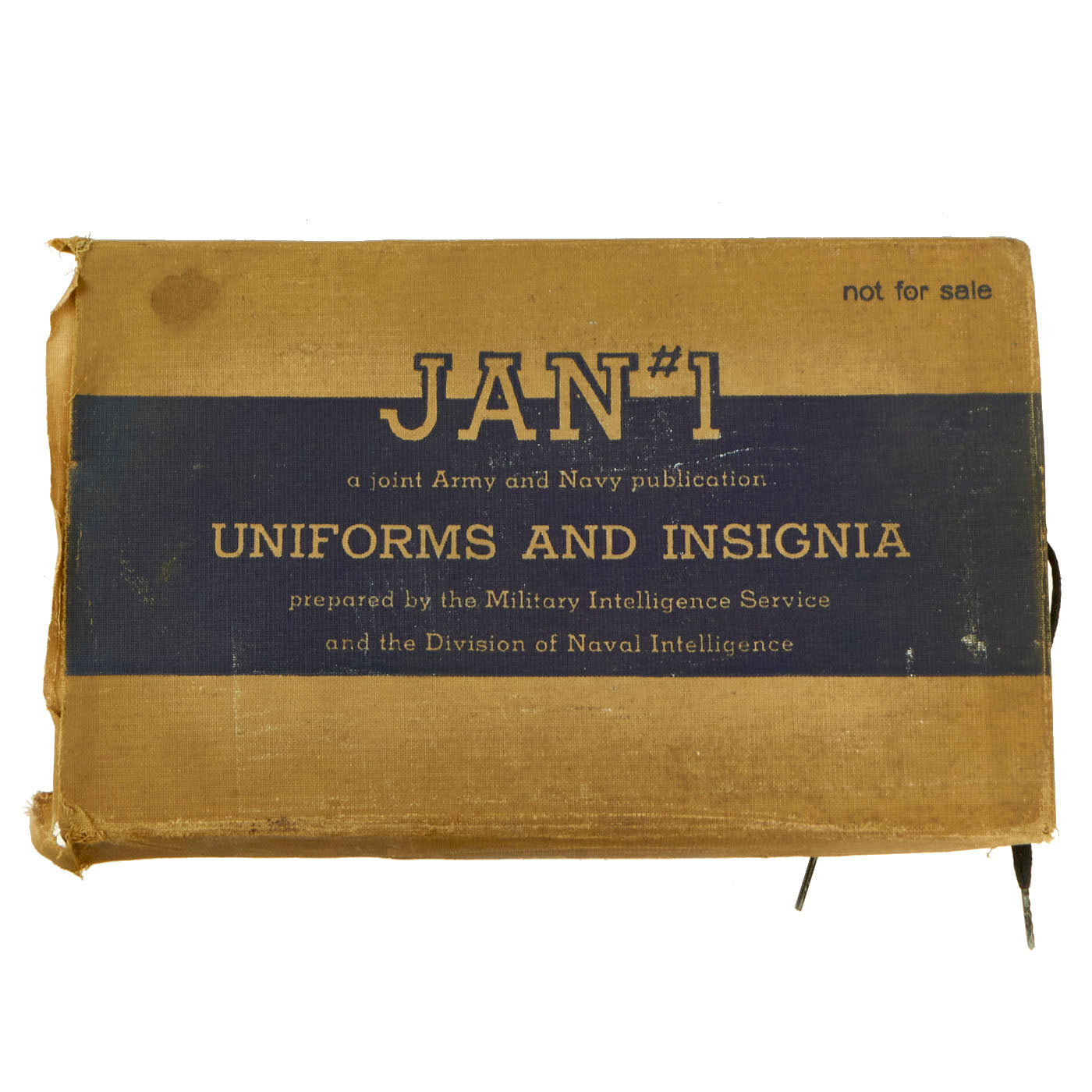 Original Item: Only One Available. “J.A.N. No. 1-Joint Army and Navy Publication, Uniforms and Insignia is a cumulative recognition manual of the uniforms used by the principal military powers of the world. It is jointly produced under the direction of the Assistant Chief of Staff, G-2, and the Director of Naval Intelligence. That portion of J.A.N. No. 1 dealing with Army and Air Forces uniforms is the result of research carried on by the Military Intelligence Service while illustrating Naval and Marine uniforms is the direct product of the Division of Naval Intelligence.