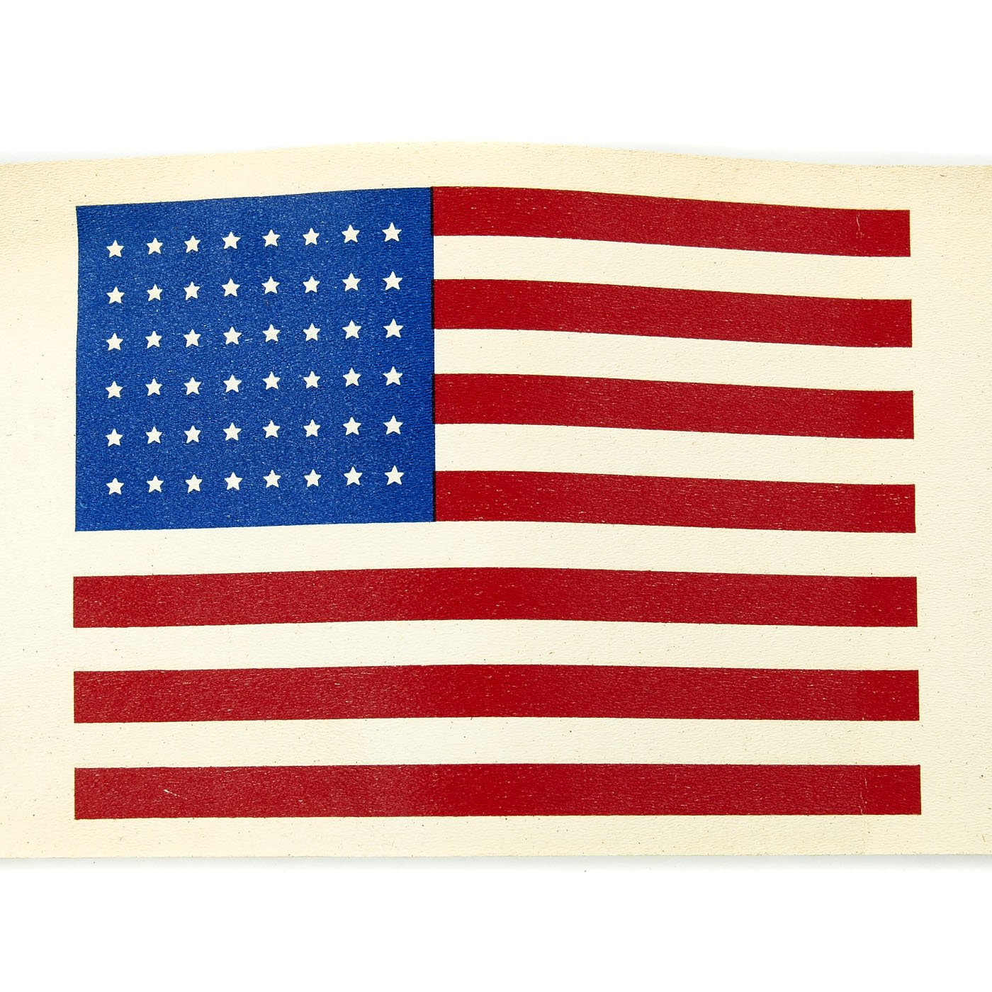 This type was issued for the Southern France, Holland and Rhine jumps and was worn as an armband or cut or folded and pinned to the sleeve. 509th PIR troopers during Operation Dragoon wore their flags on the left sleeve. There are two variations of this type of armflag, and you will mostly find both described as printed on oilcloth. This is true for the second type, which has a hemmed edge all around, but which is otherwise identical in pattern and size.