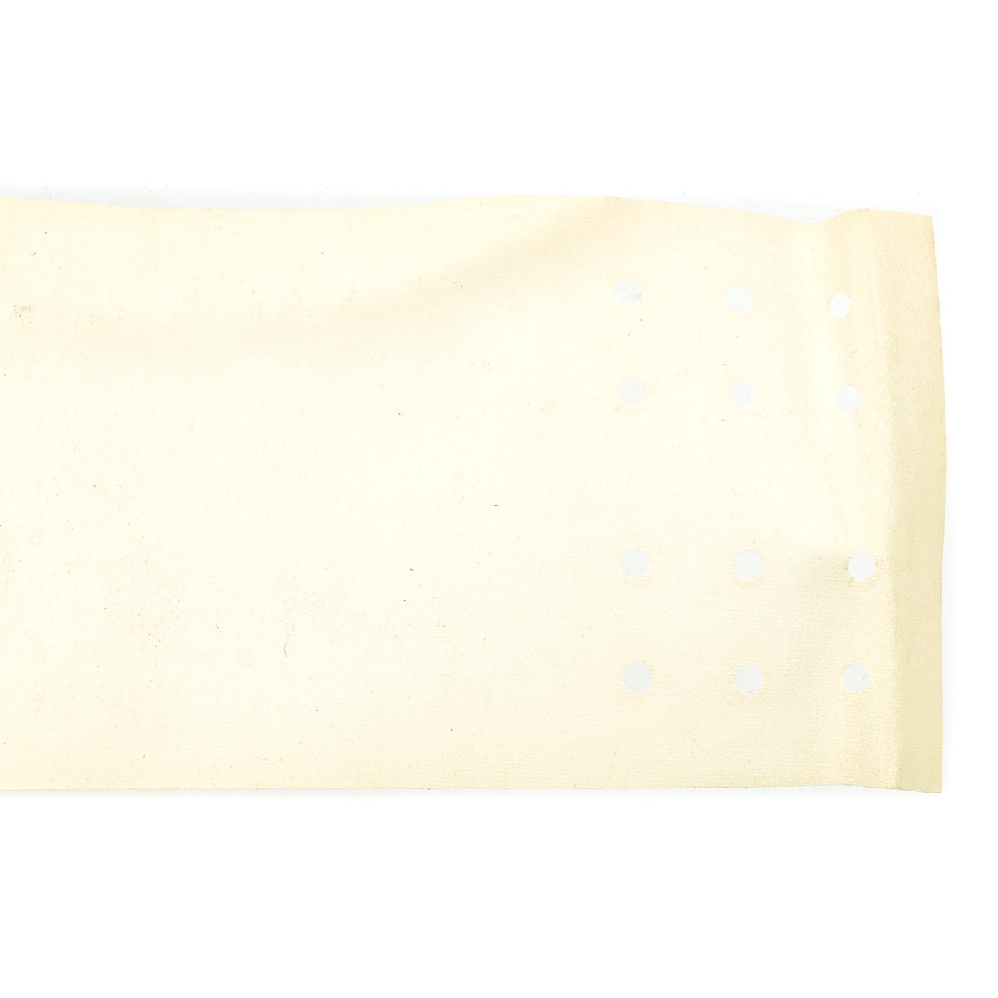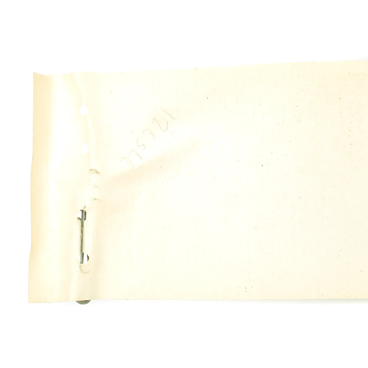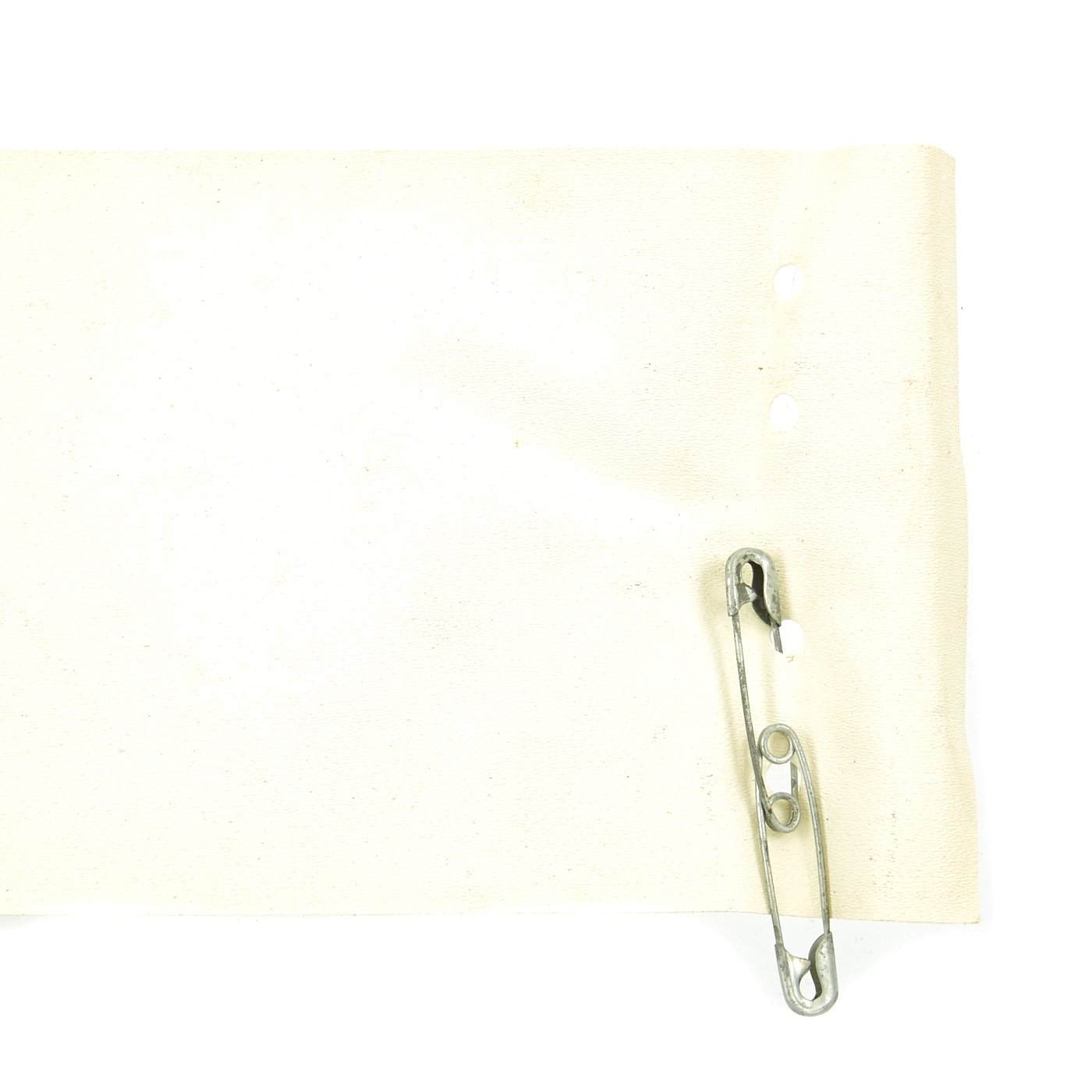 This is the third type of Arm flag, which was printed as an armband on a kind of sturdy paper stock resembling wall paper, called oilcloth. This is a semi-waterproof material also called "lacquered cloth" and "American Cloth". It has punch holes and originally came with two safety pins, both of which are present.