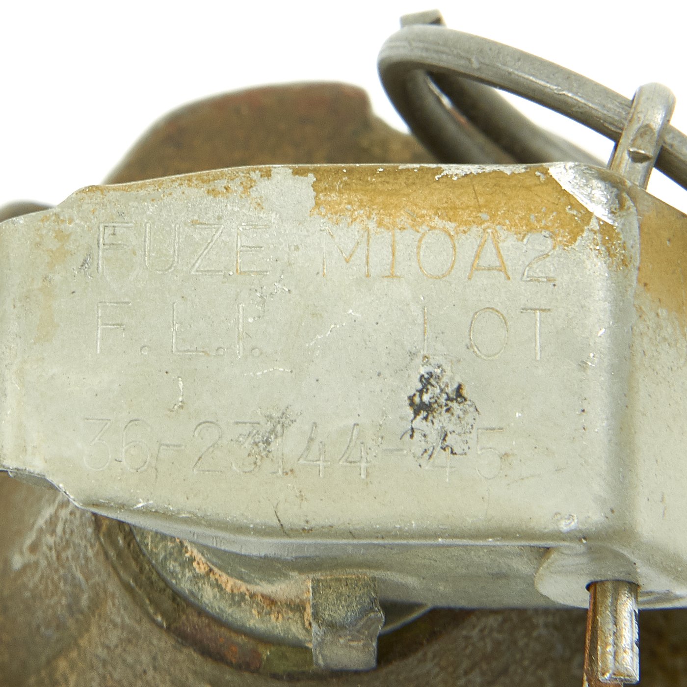 In the closing years of WWII the Mark II was produced with a solid base with the M10A3, or M6 series fuze (depending on the explosive filler used). The yellow band around the neck of the body was standard.