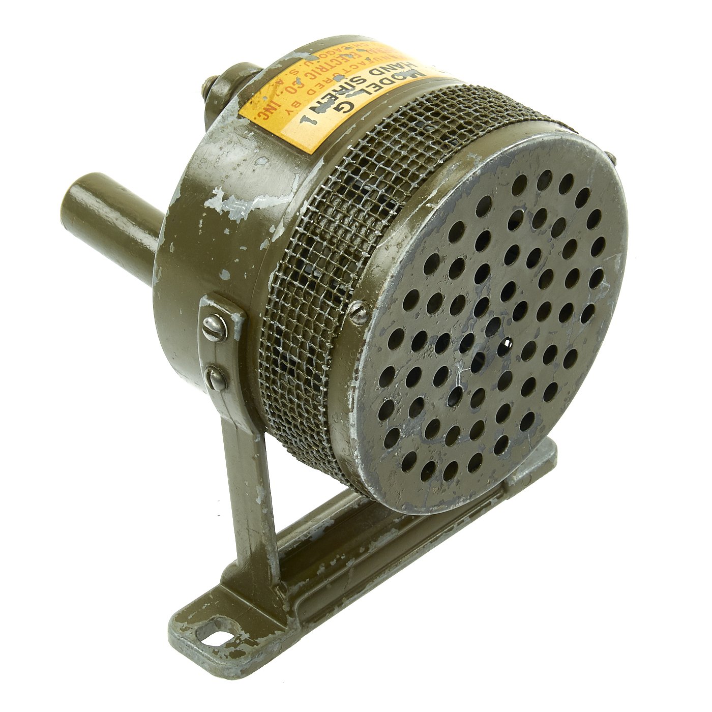 These sirens were used for Air Raids and possible Gas Attacks both during combat situations and on the Home Front. The OD Green paint scheme leads us to believer this was probably installed at a base, either at home or abroad. A fantastic display item, ready to add to your collection, or just wake up the neighbors!